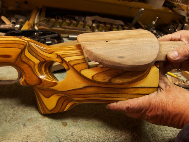 Replacing Cheekpiece on Thumbhole Stock with a Mid Tompkins rollover cheekpiece made by Steve McGee