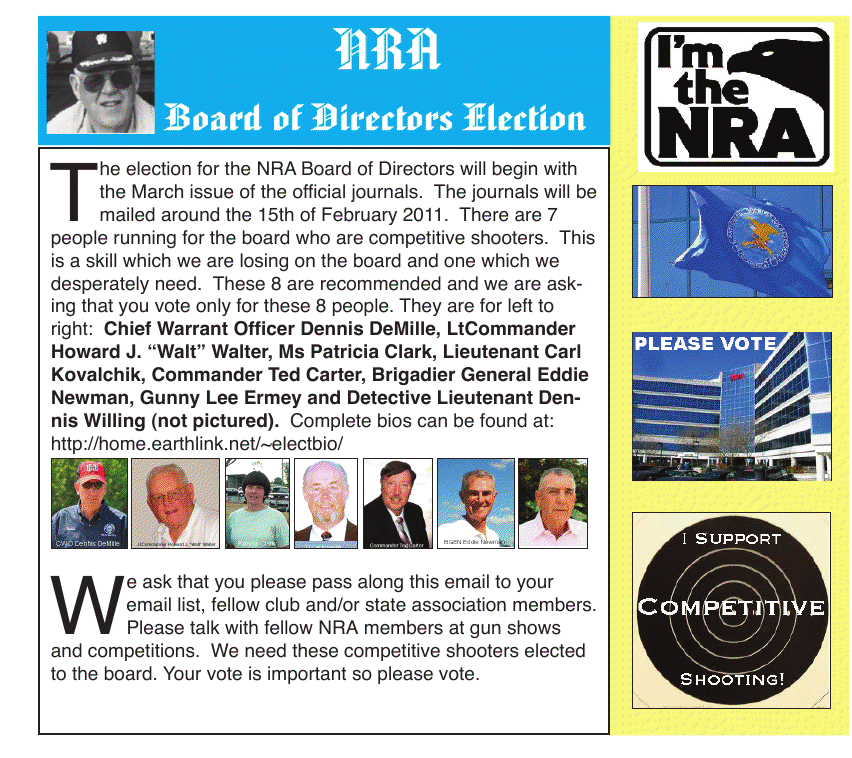 thanks for the note about the NRA Directors election. I’ll certainly keep thaty in mind. I worked the 2008 NRA convention in Louisville, KY and I saw alot of staff and I cam away with the impression that the NRA is a giant money machine and perhaps a bit bloated. There is no doubt keeping the Second Amendment alive is expensive but I have to wonder if an internal shake-up like that led by Neal Knox would be a healthy thing???
