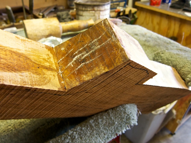 I’ve been drying this blank for over a year and a few days ago I cut it to rough shape. After it was cut, it started ‘checking’. You just never know when this will happen, and it can ruin a beautiful piece of wood.