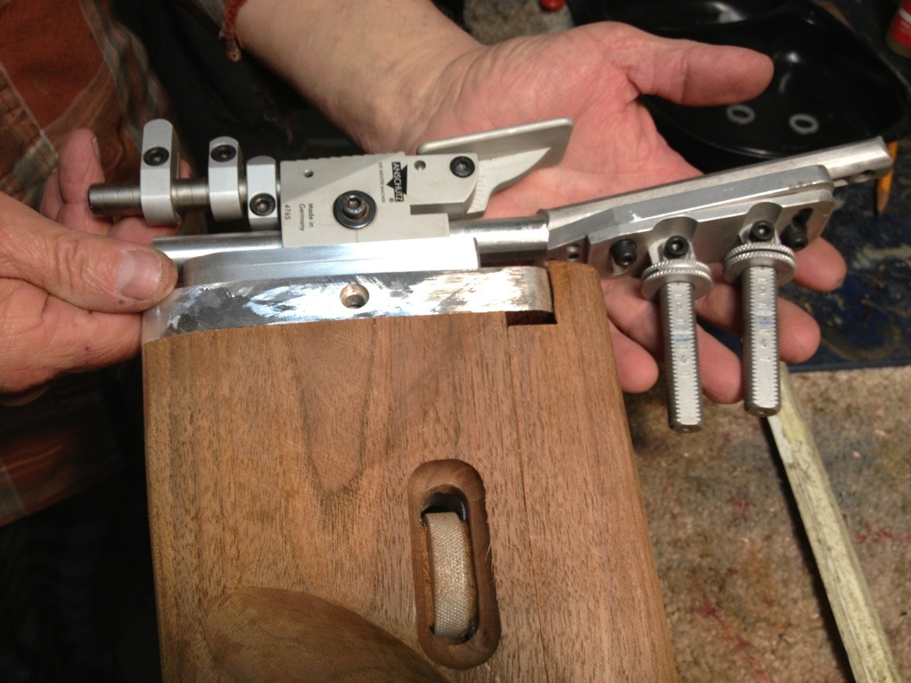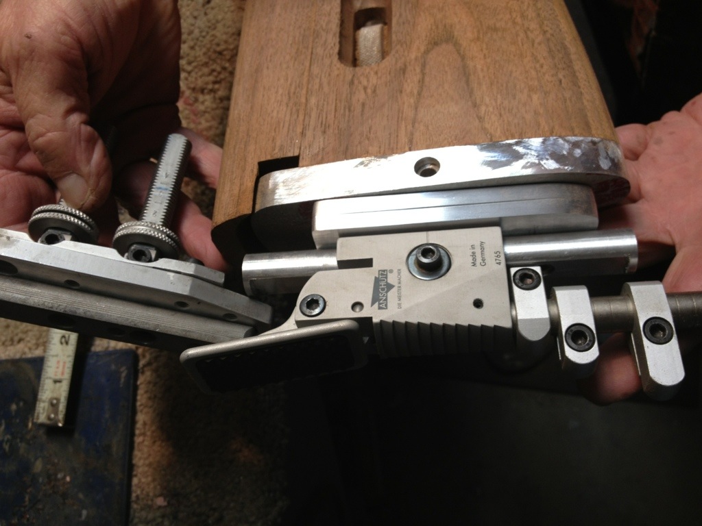 The cheekpiece riser is installed, and the machined parts to adapt and Anschutz buttplate is installed.