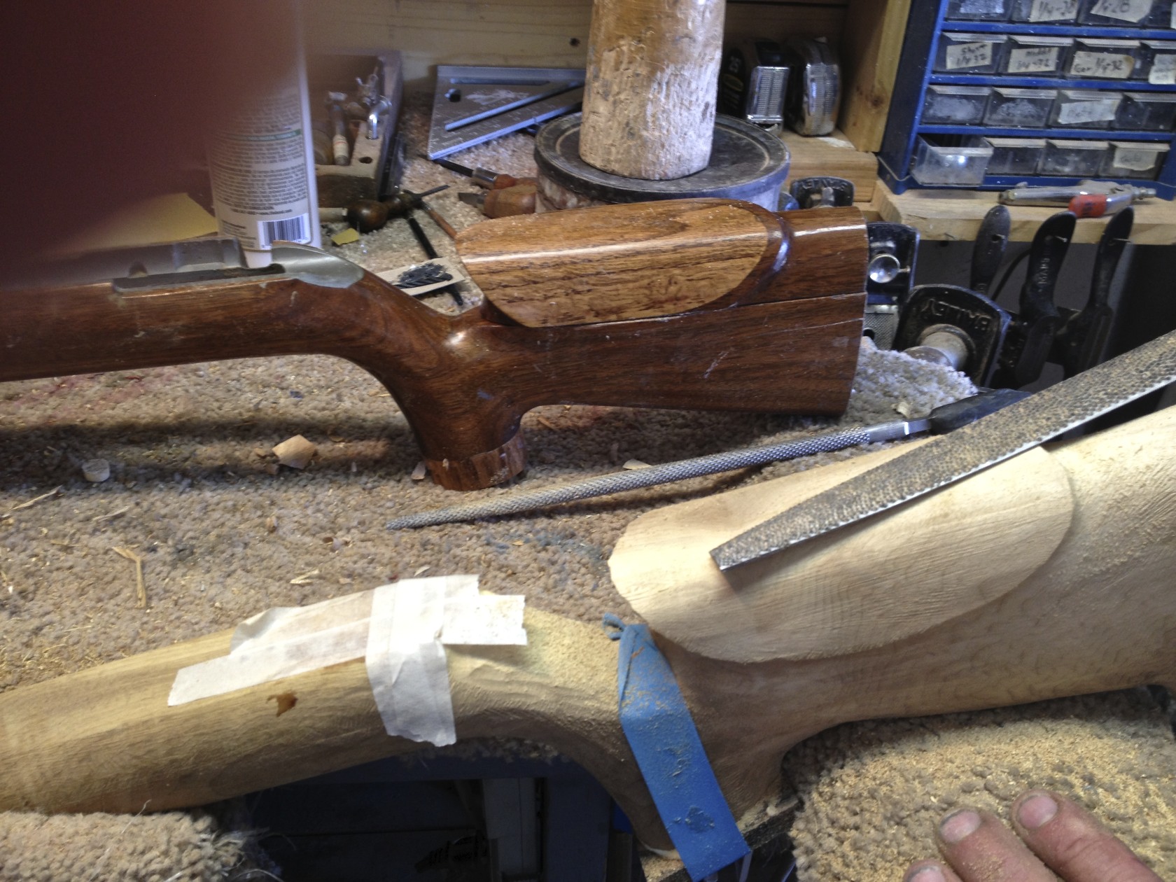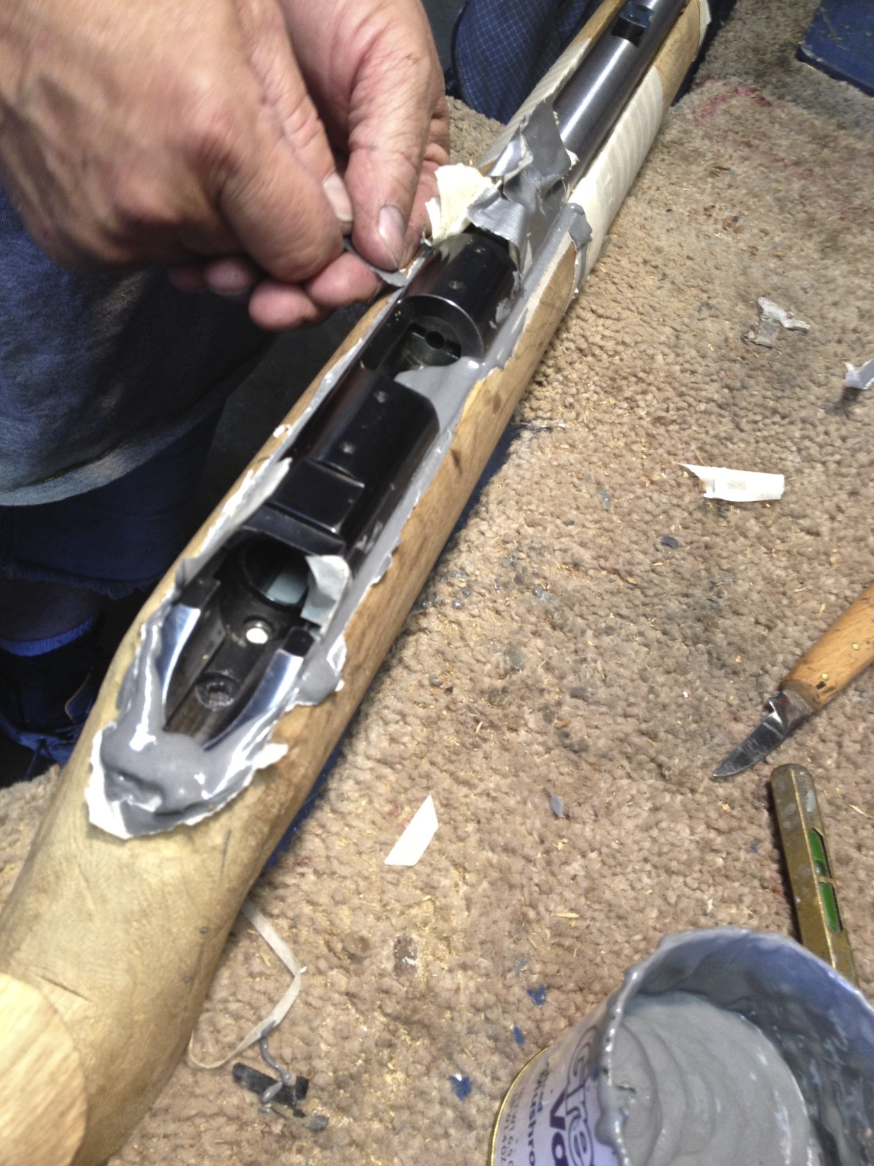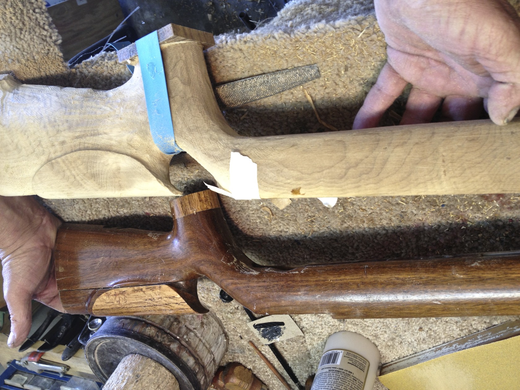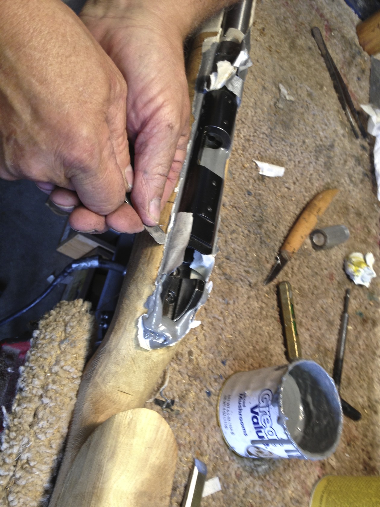 Myrtle Wood 52 Winchester Smallbore Rifle Stock Being Bedded and Rough Sanded