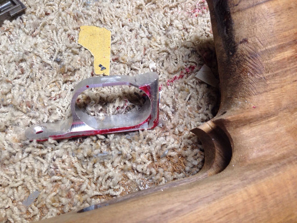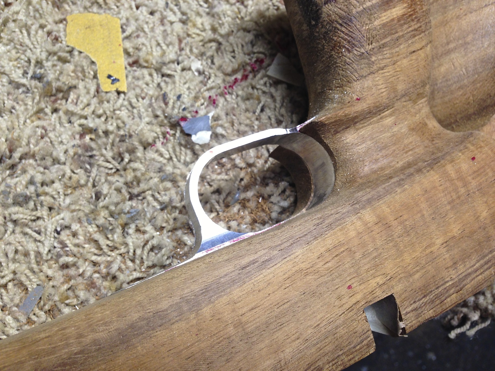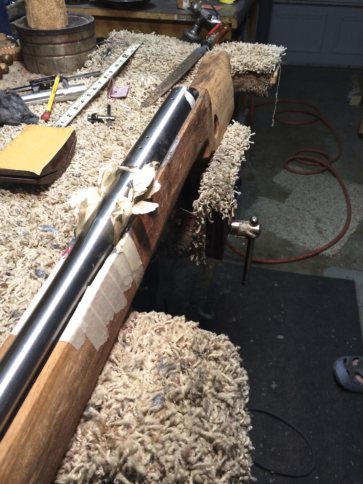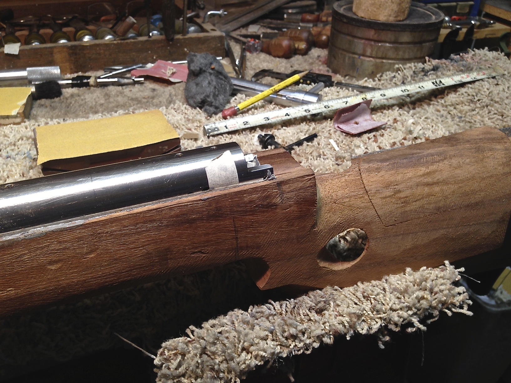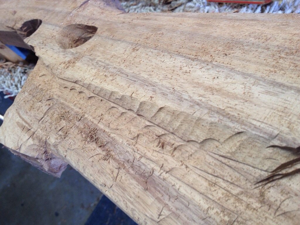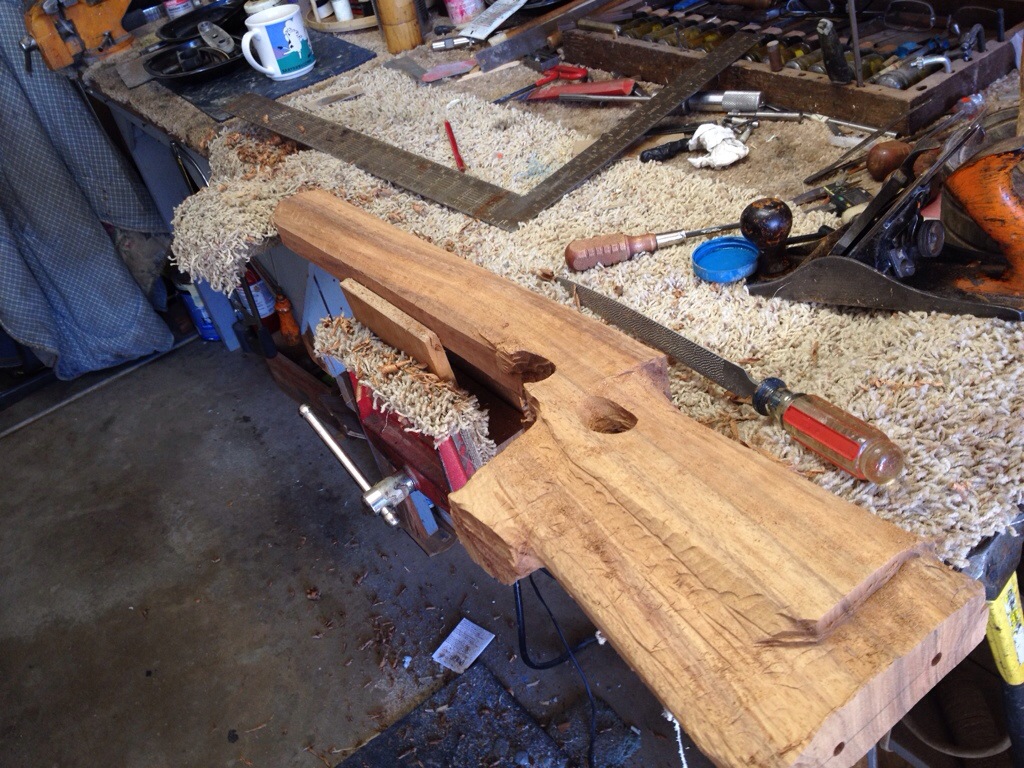 Duplicated stock being roughed out with a #49 and #50 wood rasp