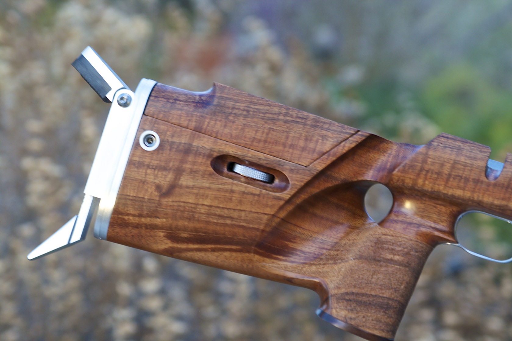 This is probably the only Koa Thumbhole stock in the world! I made two buttplates for this rifle so that it could be used for International (300 meters) and HighPower.