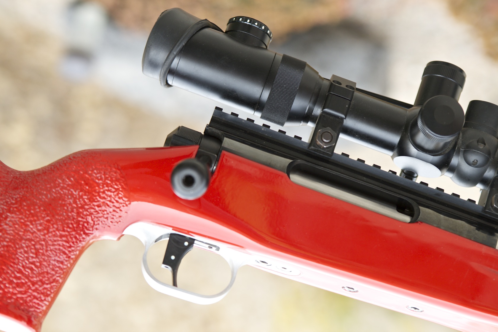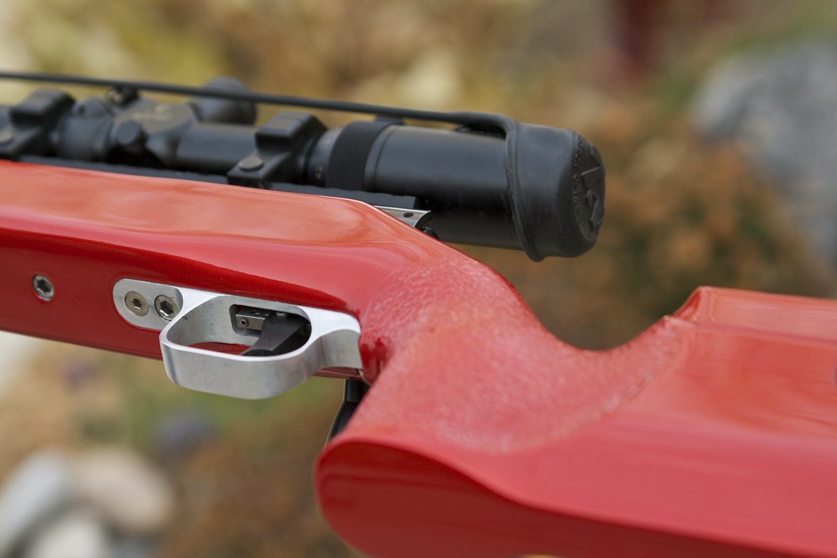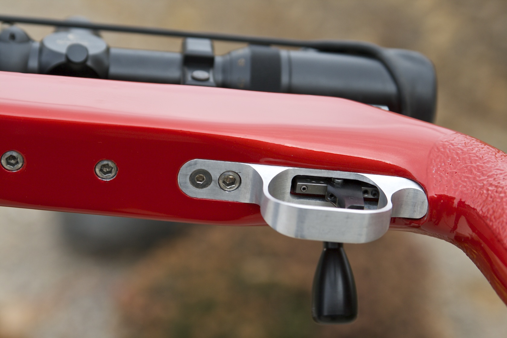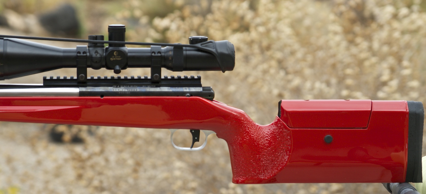 This was a McMillan blank which I inletted, pillar bedded with 3 pillars and added a recoil lug, and I also painted it Candy Apple Red. It will be used for open F-Class. It’s chambered it a 7mm Shehane. Scope is a Night Force.