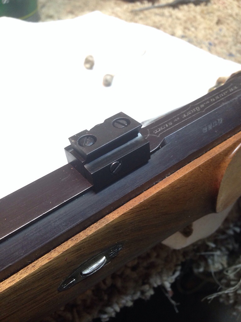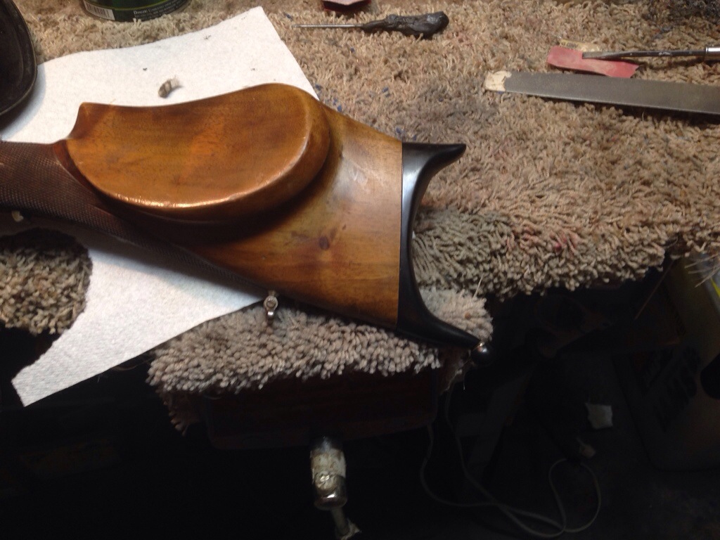 The buttplate and scope mounts were lost years ago, probably during WWII. This is also the Scheutzen rifle that I worked on the fore end a couple months ago. The scope blocks are for a Unertl and they have been rust blued with Baker’s Express.