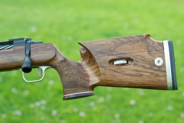 Left-hand English walnut stock for Pierce action Palma Rifle Completed