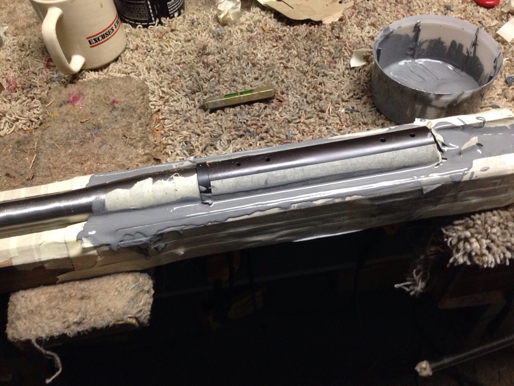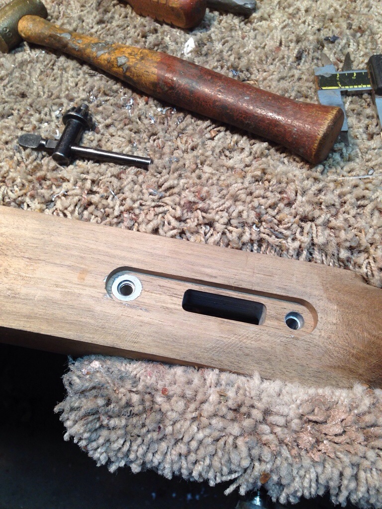 Receiver out of bedding compound and stock. The pillars are part of the bedding block, which eliminates stress from the wood.