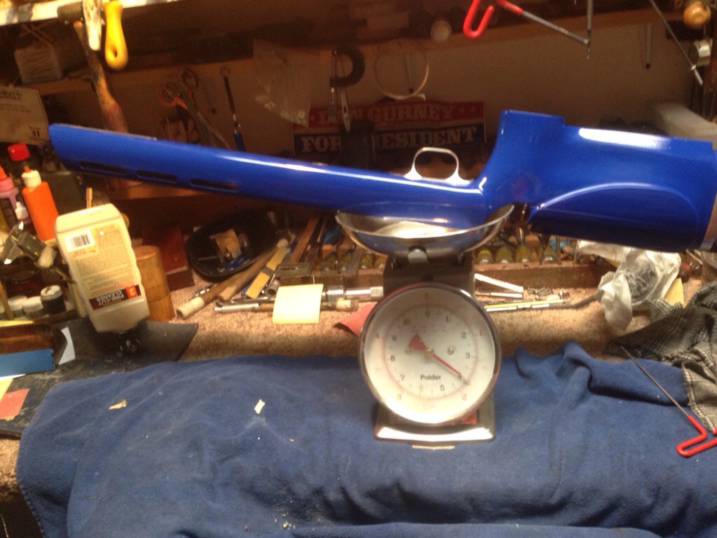 Final completed weight is approximately 4 pounds including all adjustments. There is a fine line between the super lightweight stocks, and the correct balance required to shoot well. Not all super lightweight stocks will have the best feel and shoot properly. This is a proper compromise which should do both and accommodate a left handed shooter. In my 40 years experience, lightweight stocks can be more difficult to control. The lightest stock I ever made was balsa wood and fiberglass and weighed 11 ounces. It was a benchrest stock with a really heavy barrel. A rule changer for Benchrest shooting.