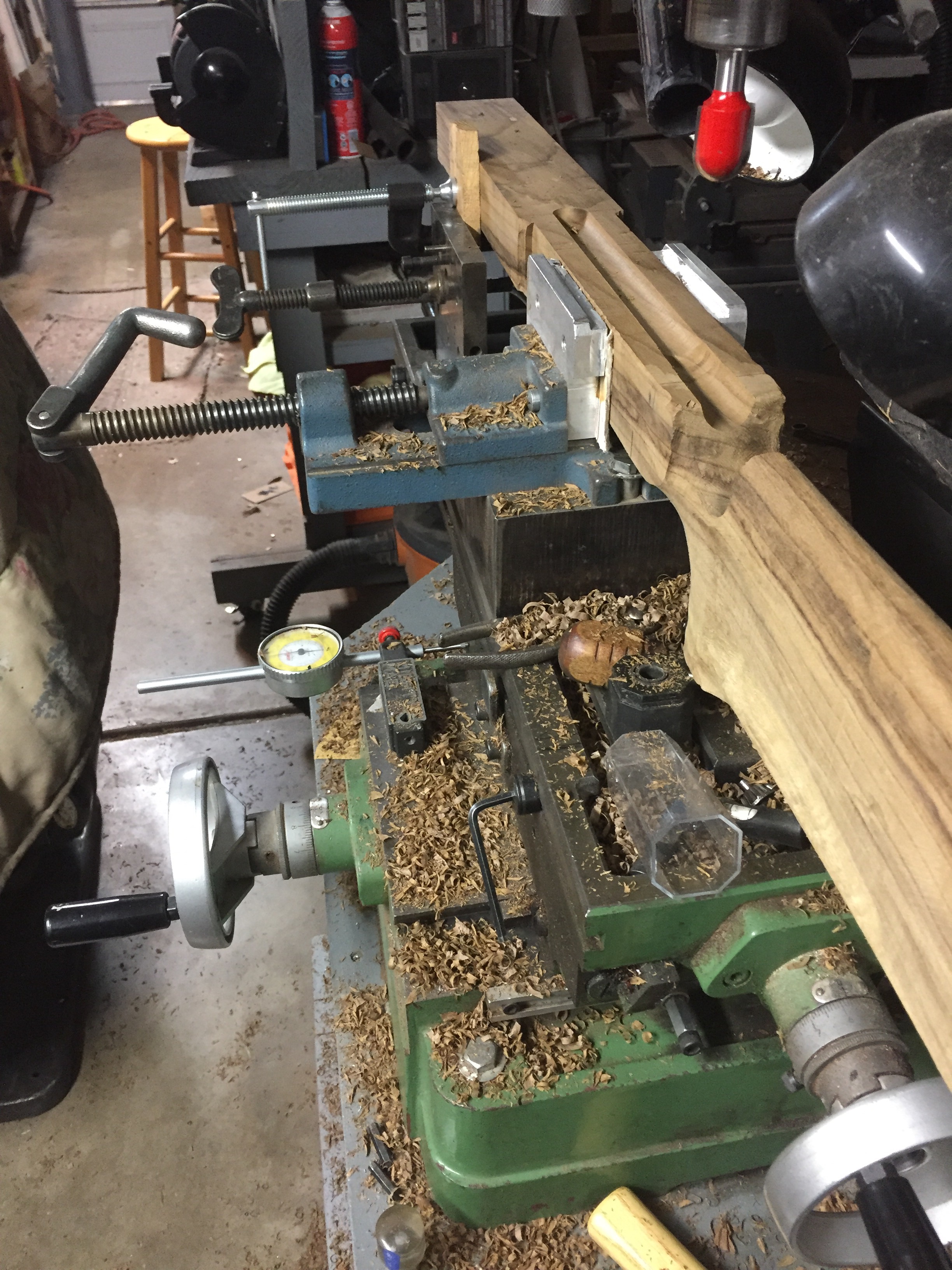 I found it necessary to laminate pieces on the side to get the correct width to make this stock wide enough for F class. I was able to use some of the excess wood from the stock to match the grain of the forend. I also added a third action screw and added a recoil lug.