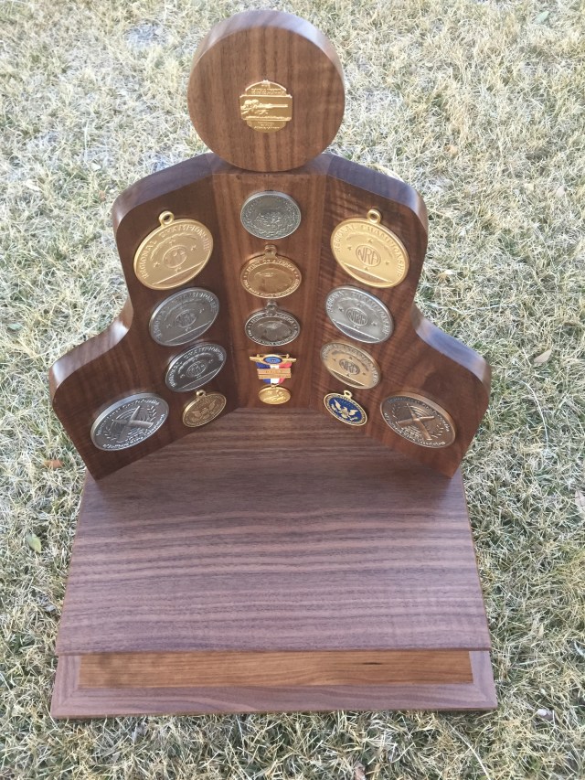 Will be presented at the Sacramento March Madness rifle match. I recently finished this Memorial trophy.
