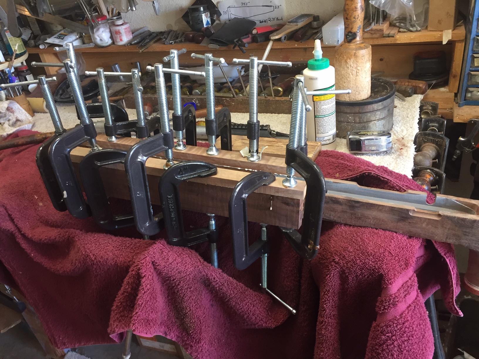 Continuing work on a F-Open Claro Walnut Stock for Golden Bear Stolle Panda Action