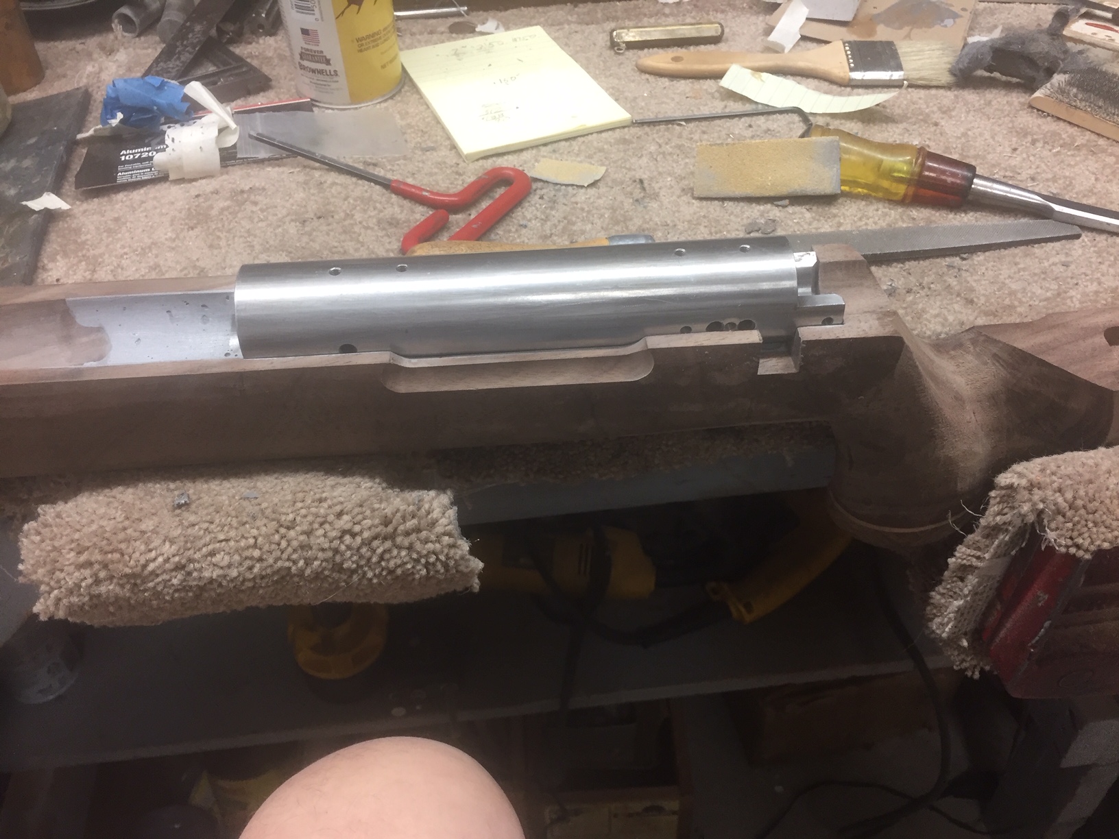 This rifle is for a Palma shooter. He cut his own trees down, made some blanks for me. I made him a stock.