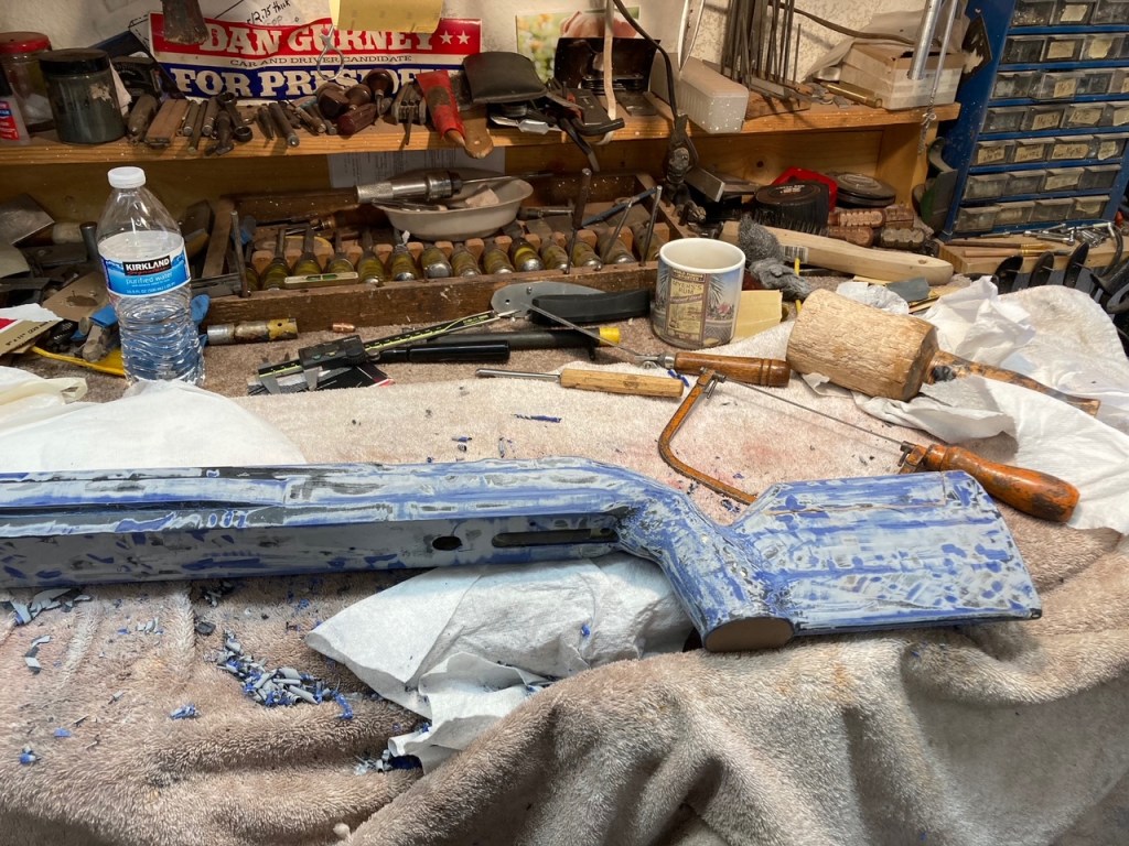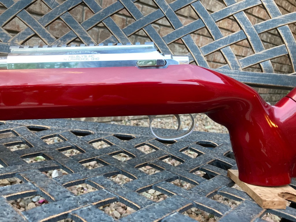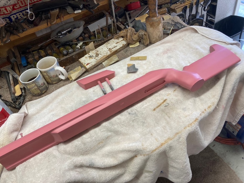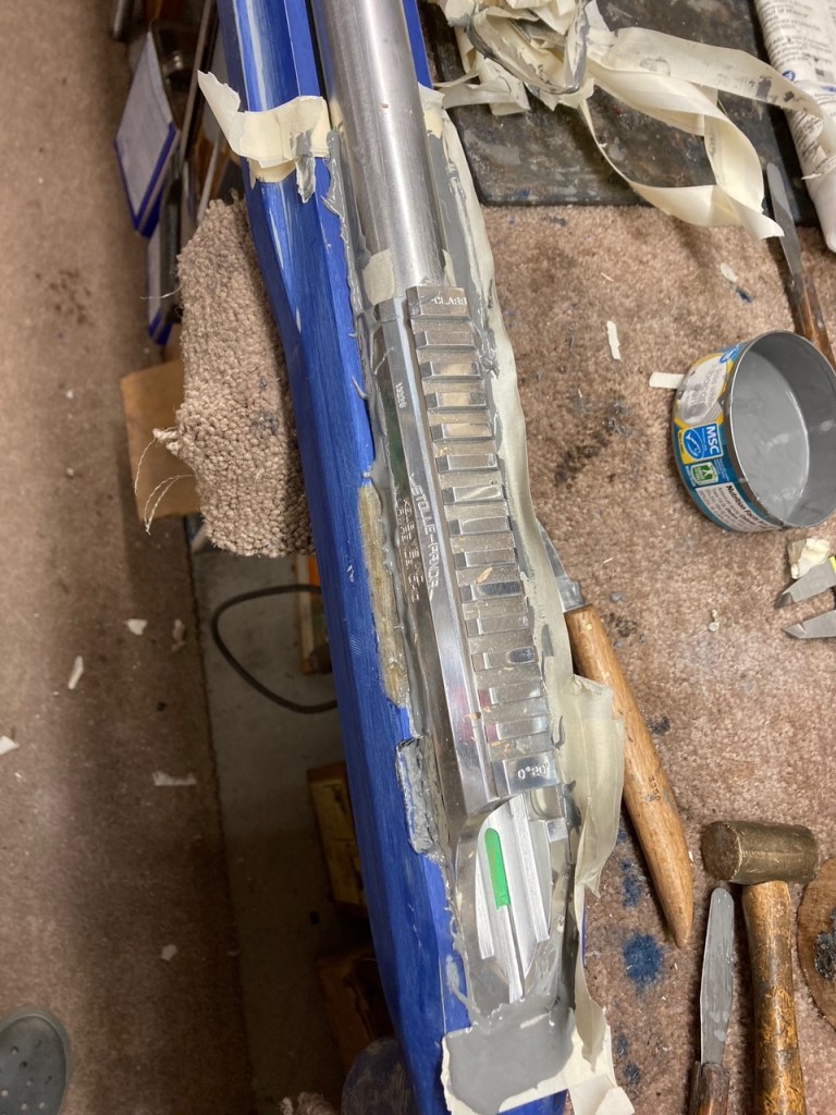 I received this stock and it was covered with faux carbon fiber tape. While taping the tape off I discovered it was previous painted Lapua Blue. It had a drop port in it. I had to fill where the trigger was. Also, cut the cheekpiece off and filled in that area. I did this so the owner could have an adjustable cheekpiece and buttplate. Bedded it for a Stolle Panda F-Class action.