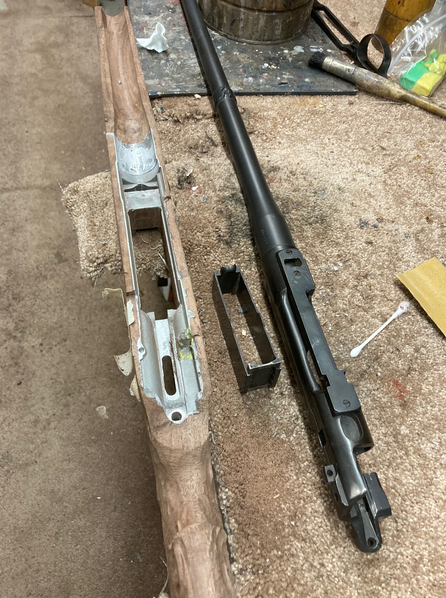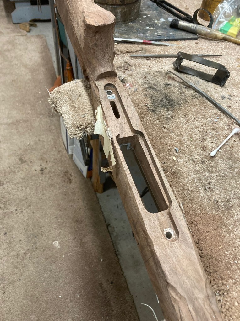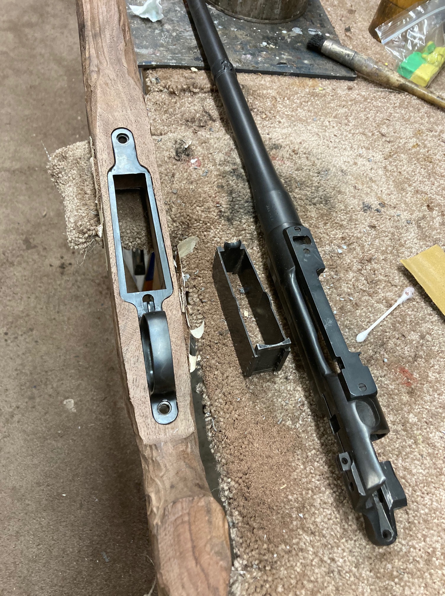 Someone I’ve know for 20+ years had an Enfield P action and no stock. The Enfield has a rather large action due to the trigger and magazine box, so I modified the stock from a Winchester Pre-64 scope stock.