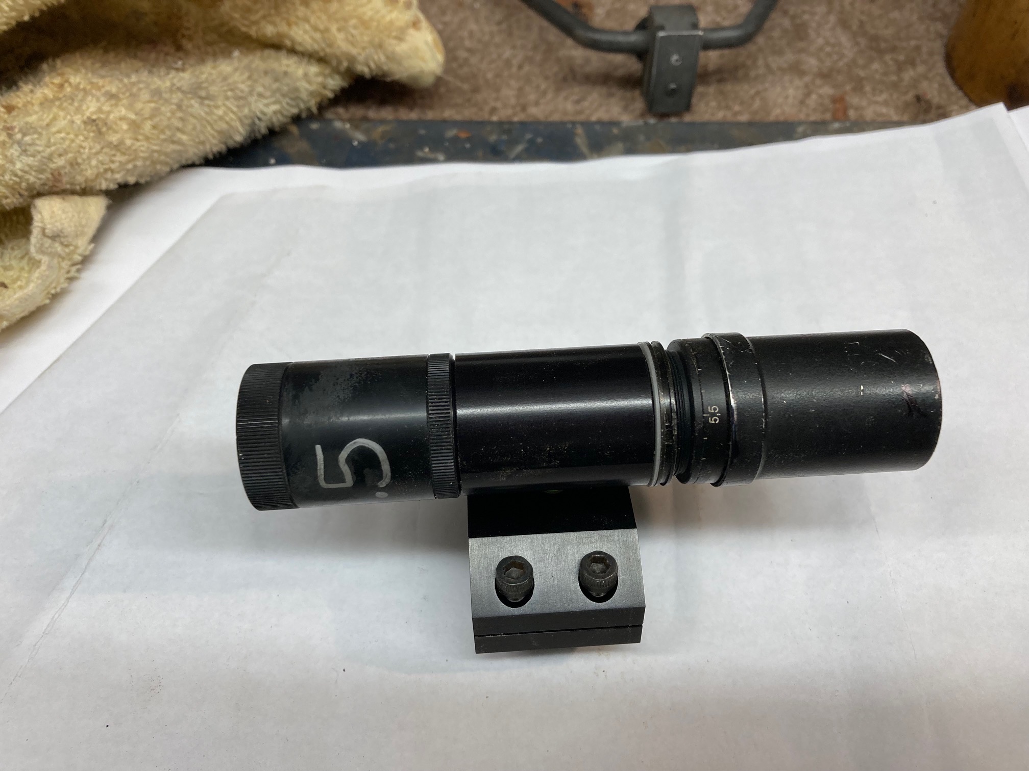 Scott Riles 22mm Front Sight: 3/4 inch barrel escutcheon, 4-6mm aperture, .5 diopter lens, excellent condition, front and rear sunshades.