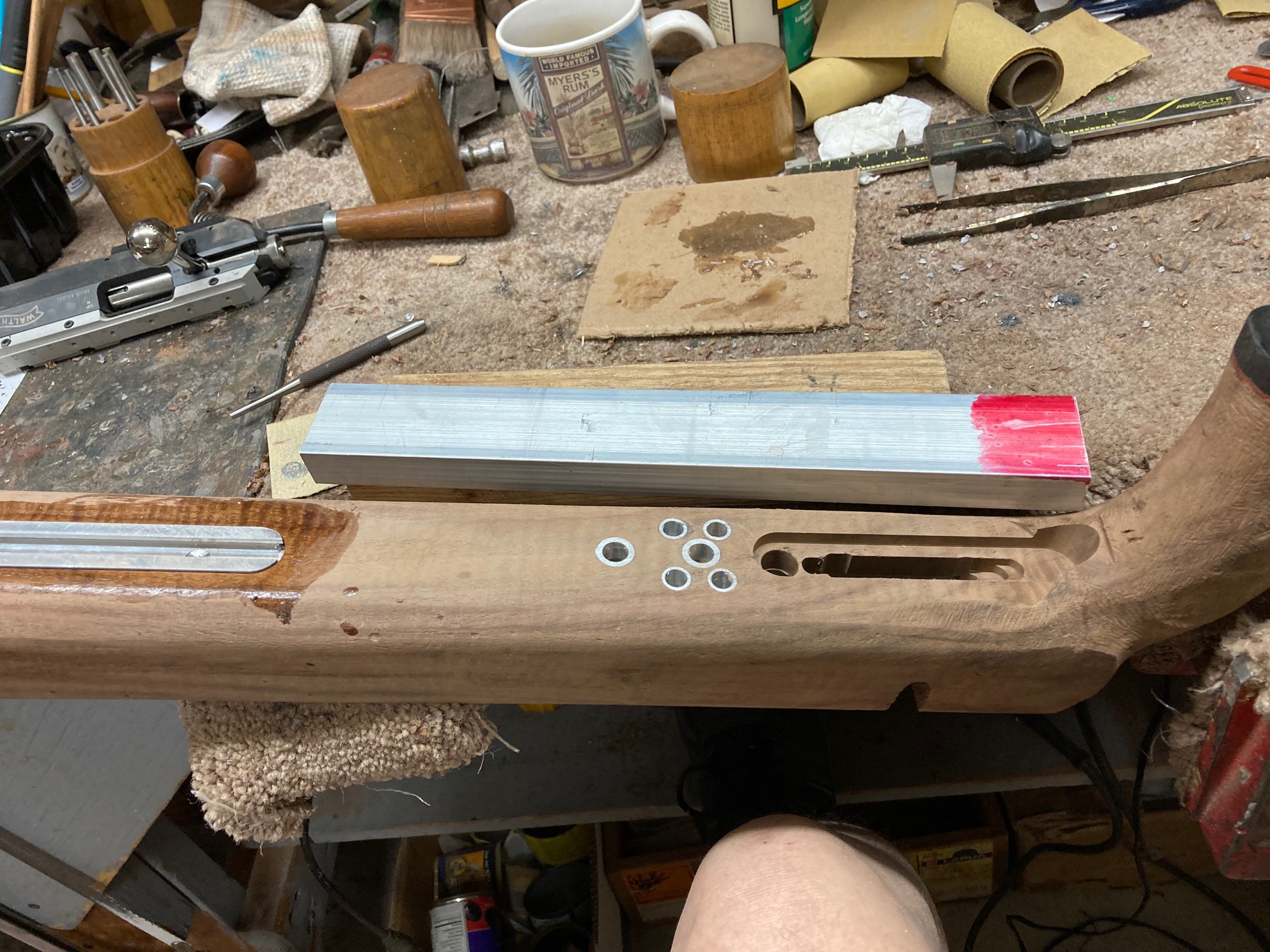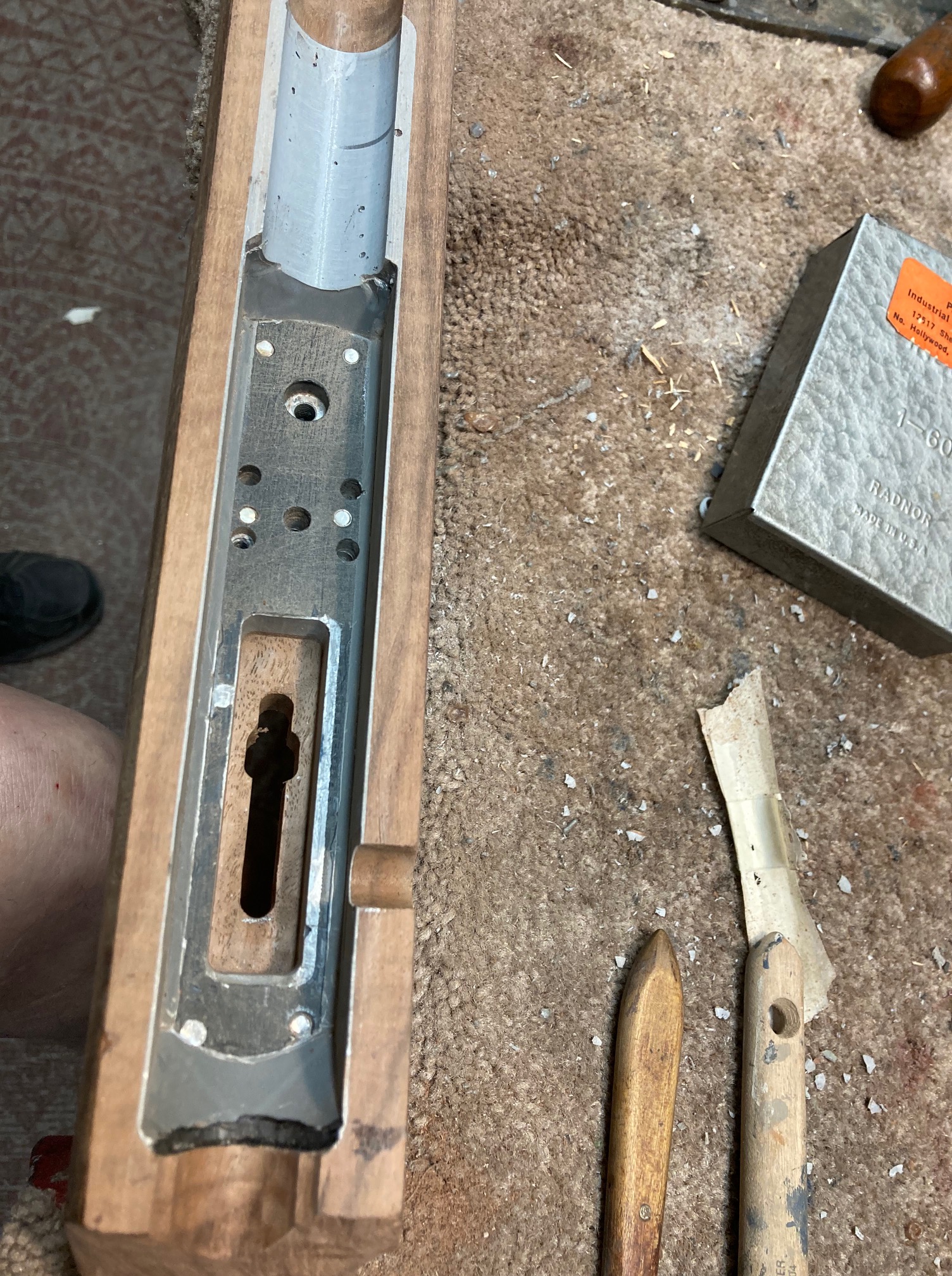 This action is meant to be put into a metal stock. In order to make the transition from a metal to wood stock I needed to make the appropriate pieces.