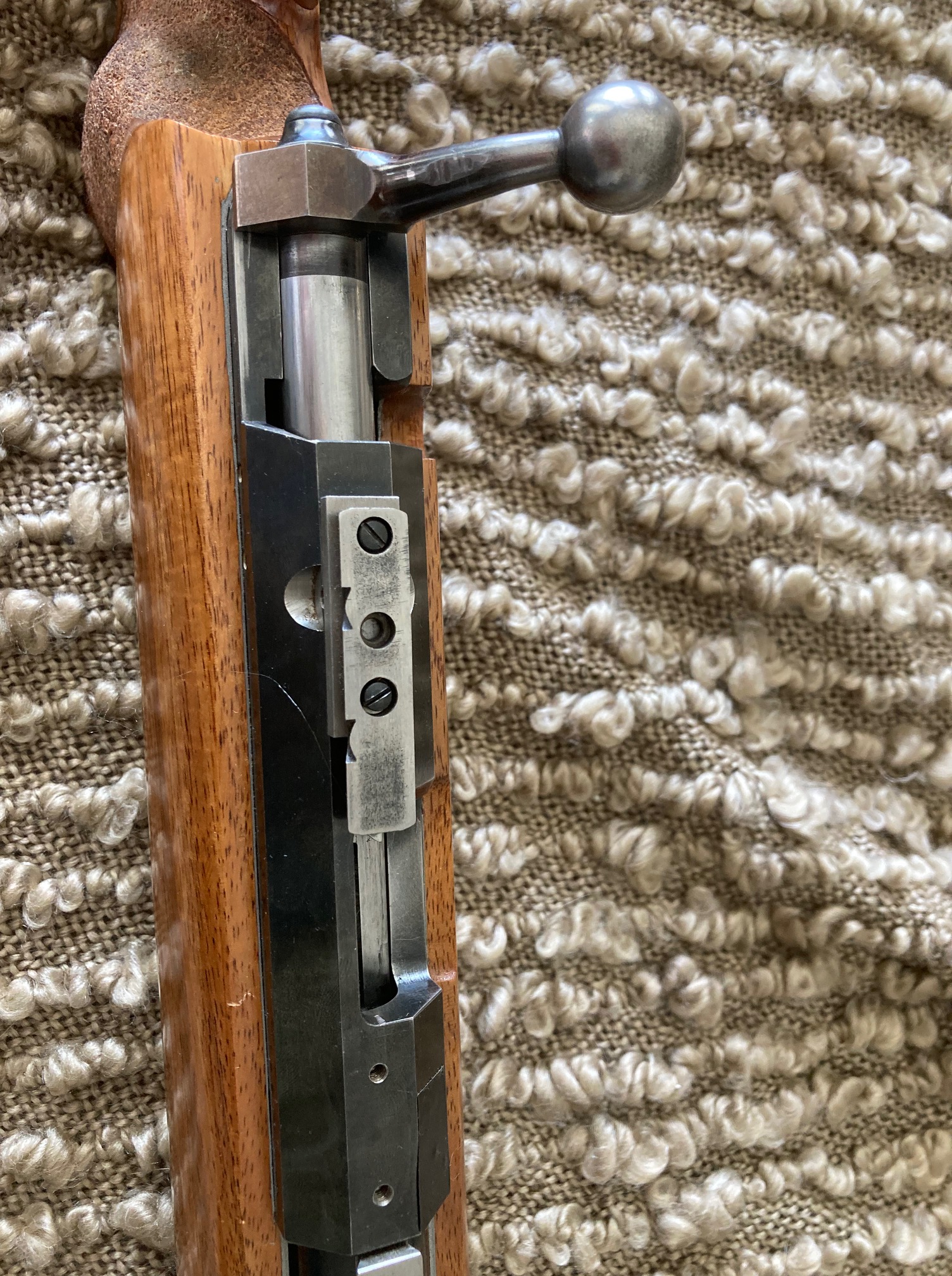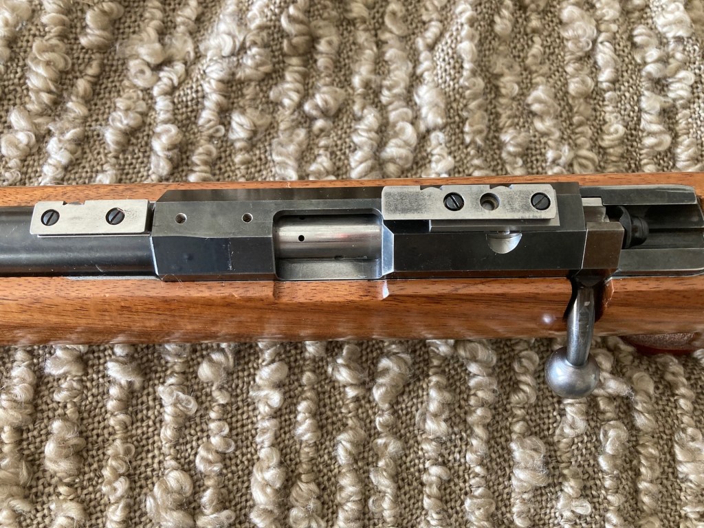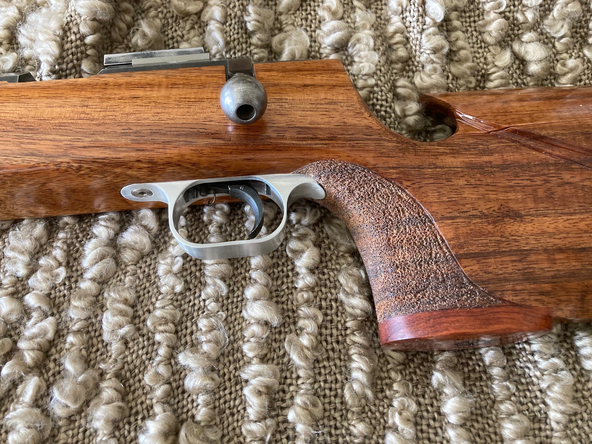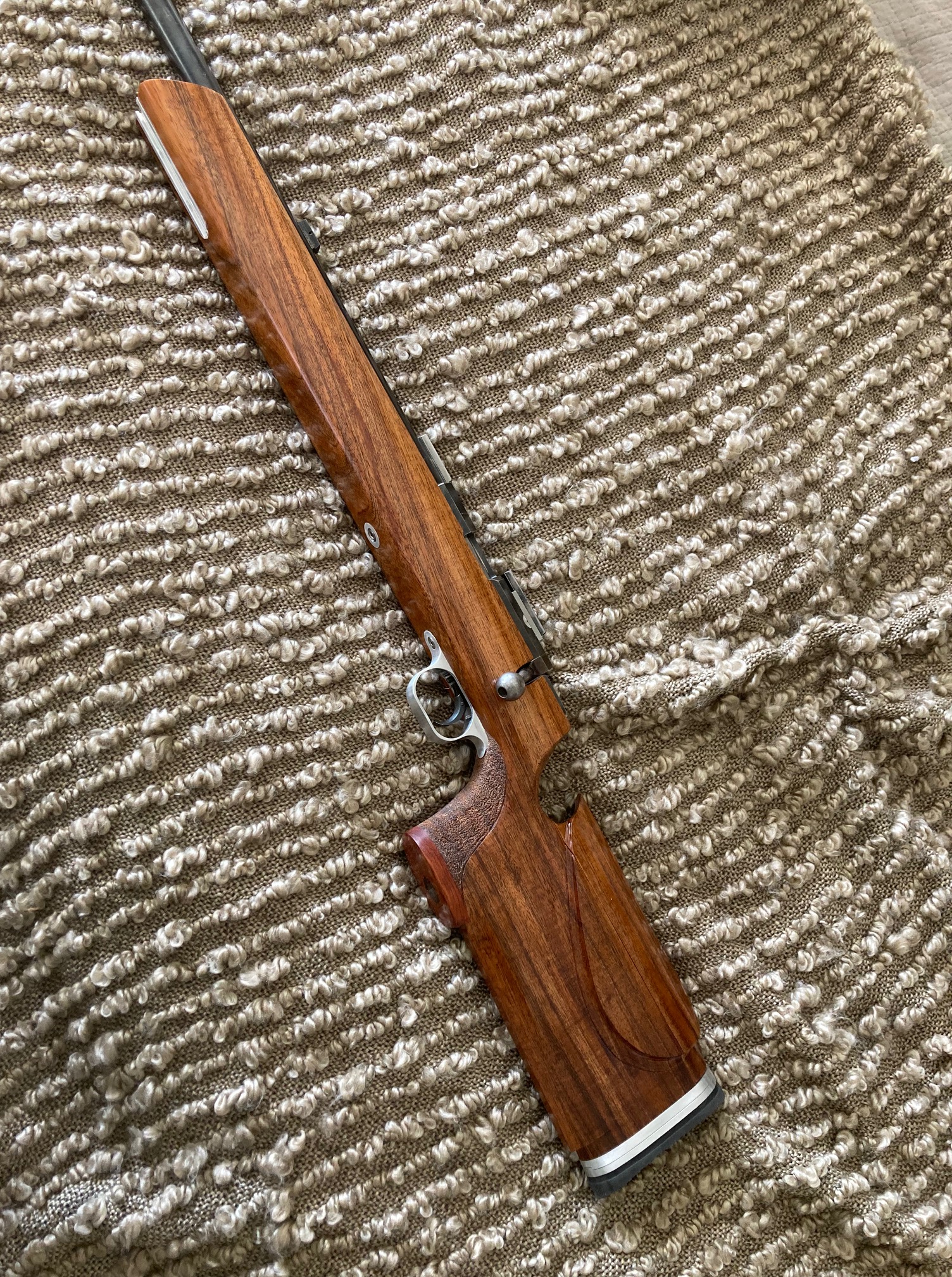 This is an extremely rare action. The action is very similar to a Winchester 52. This FTR stock is right hand, but the action is left handed. When complete it will be able to shoot from the bench.