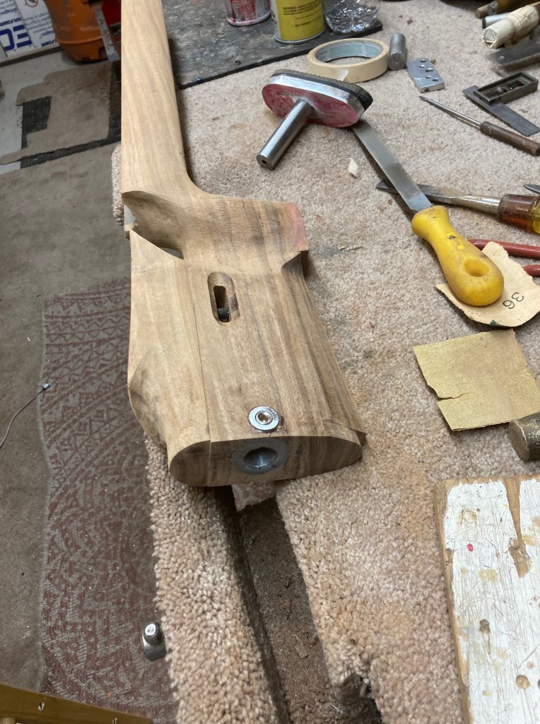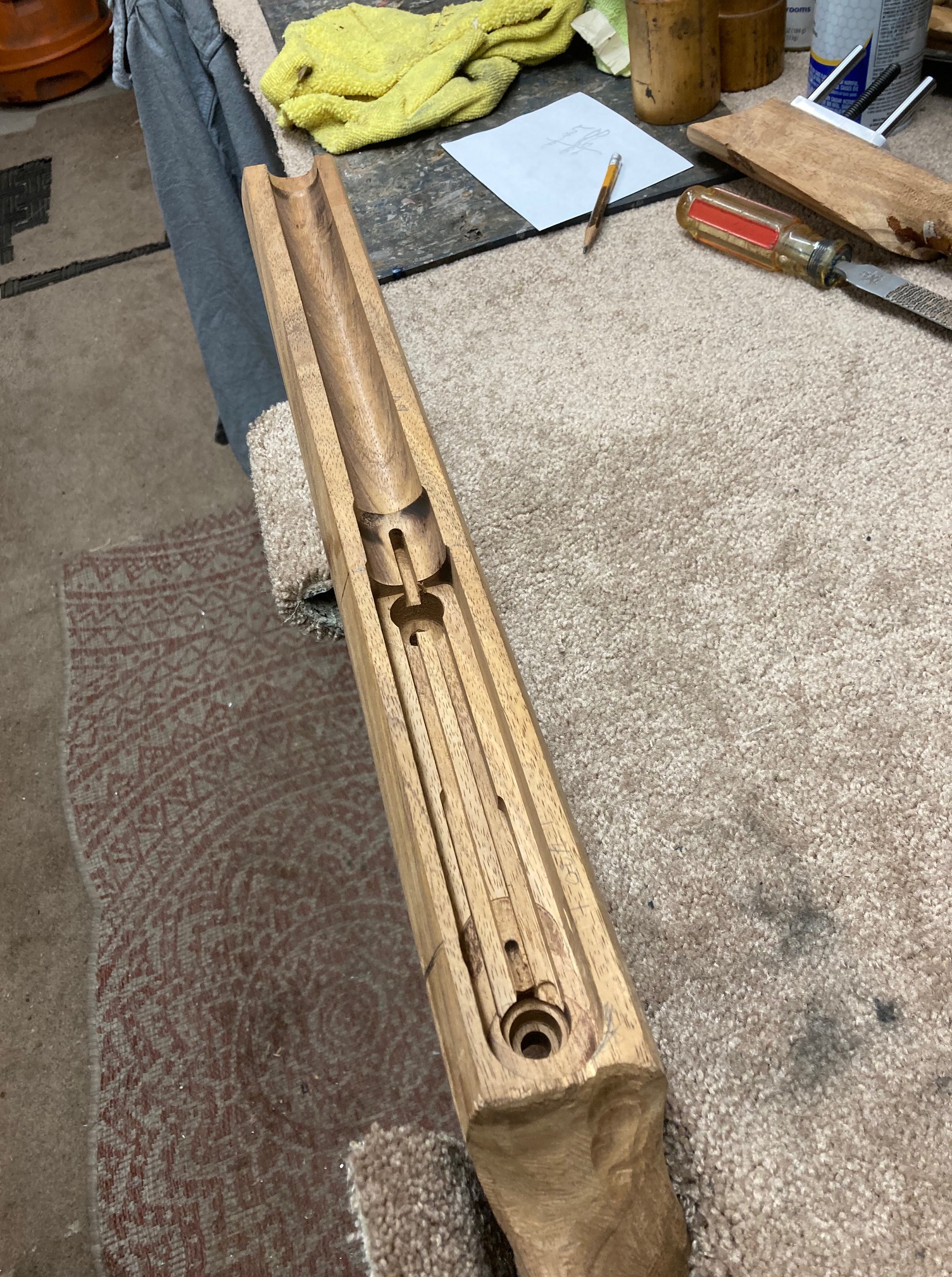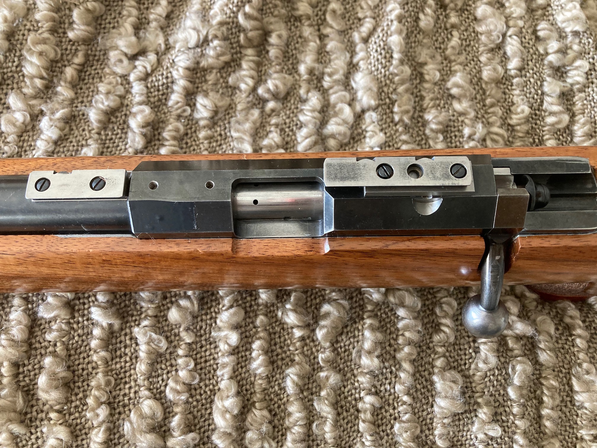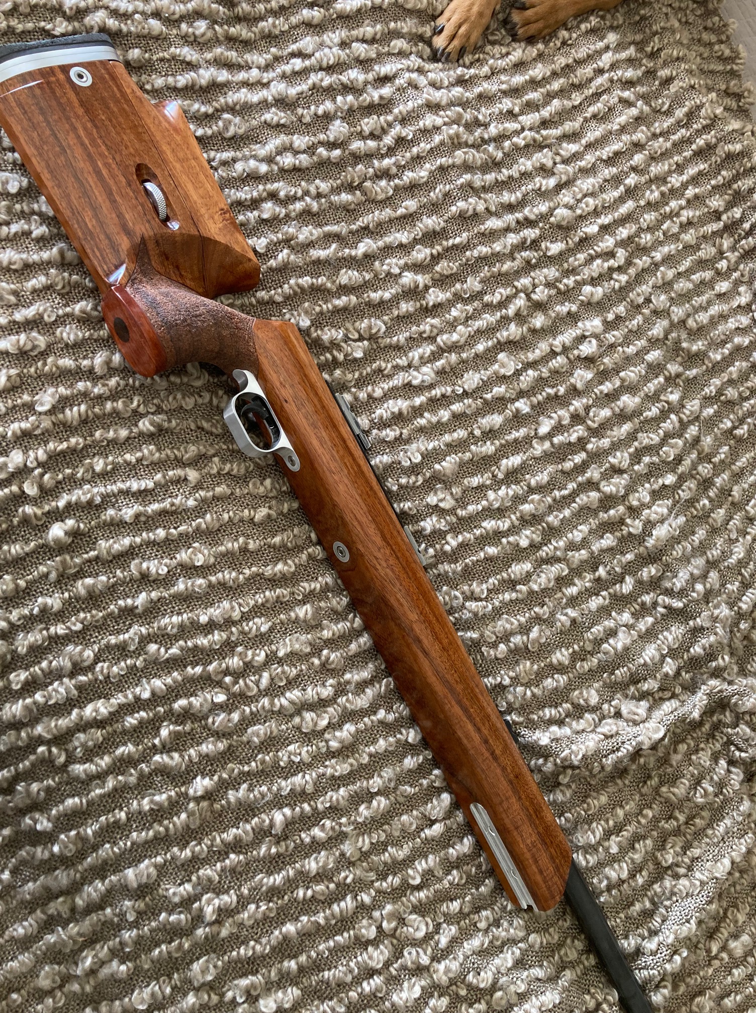 This is an extremely rare action. The action is very similar to a Winchester 52. This FTR stock is right hand, but the action is left handed. When complete it will be able to shoot from the bench.