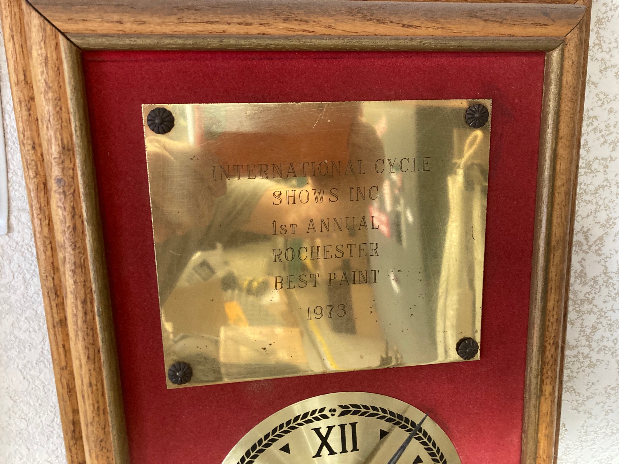 I put up my USNRT Plaque up next to my International Cycle Show 1st Place Best in Paint Plaque.