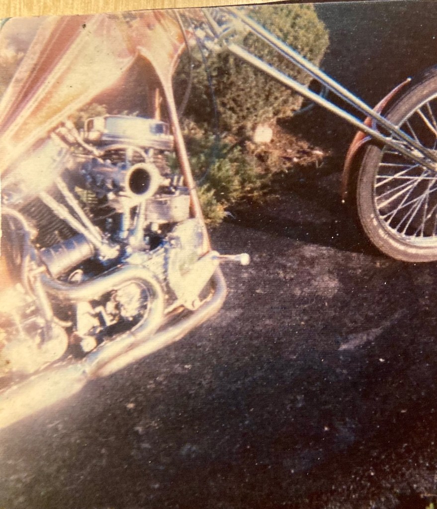 Note the early S&S carburetor. In show judging you get extra points for fenders. I crafted a front fender and was able to attach it to the forks.
