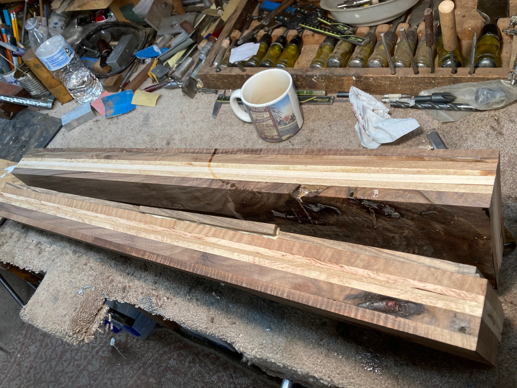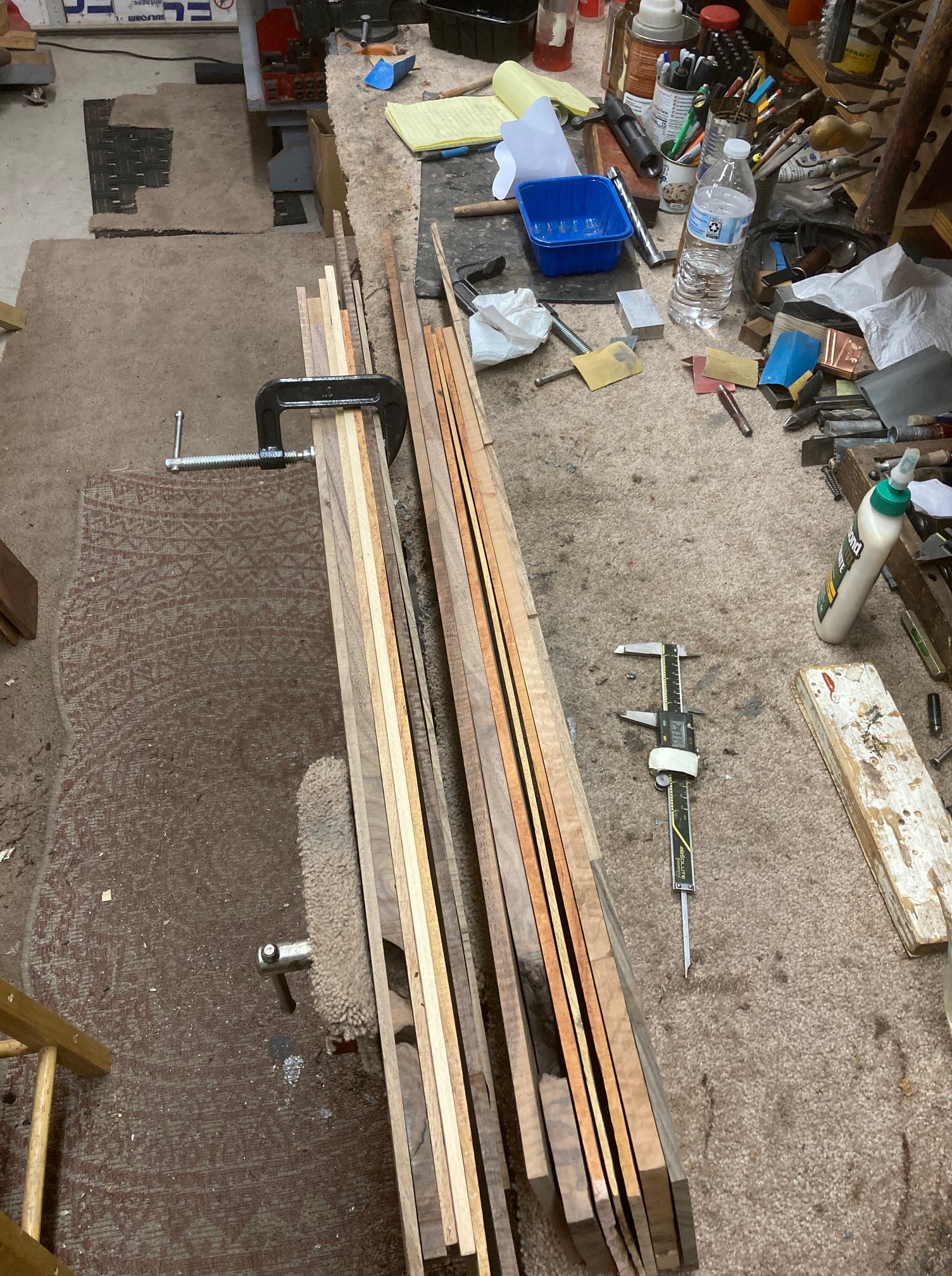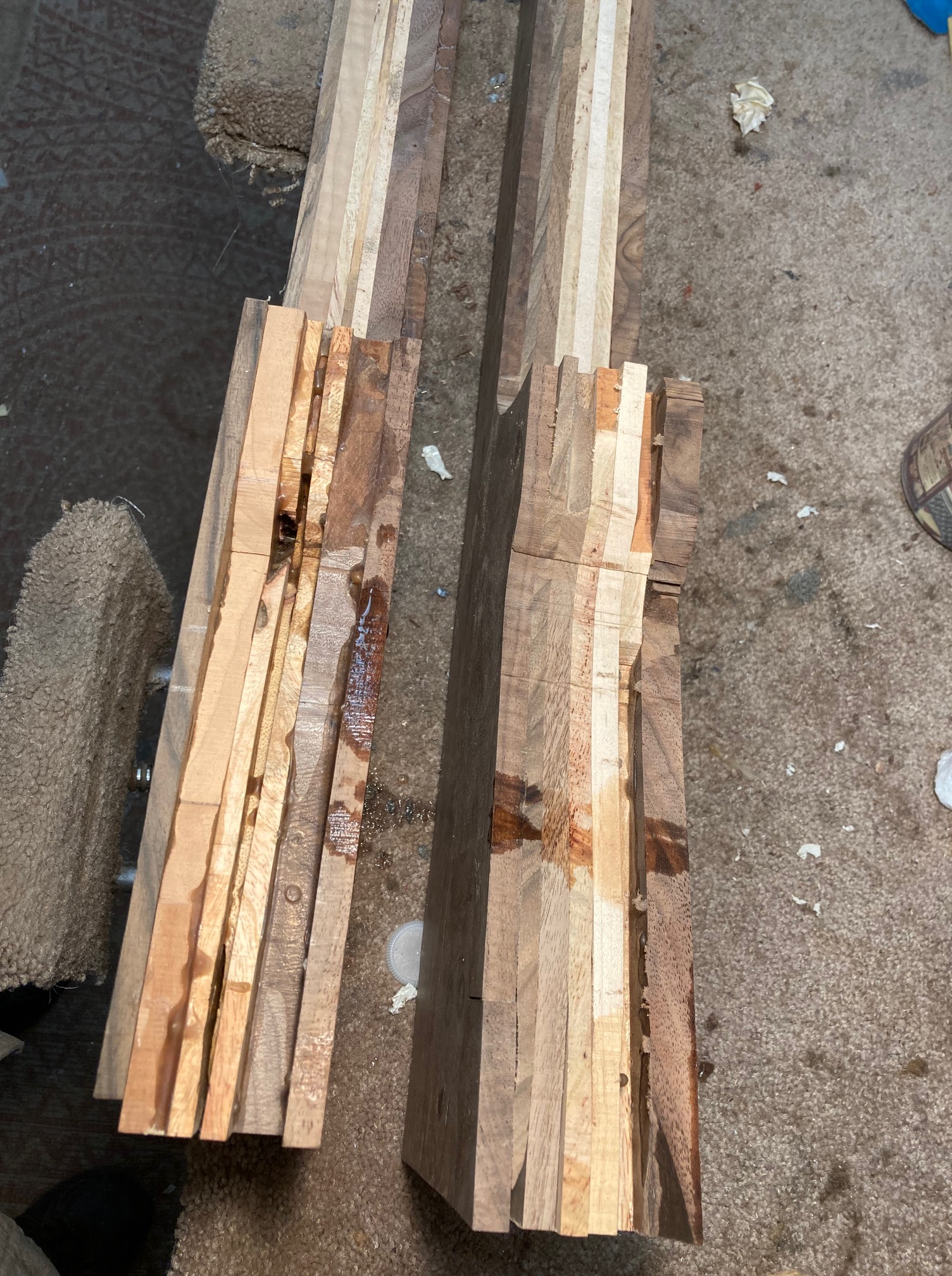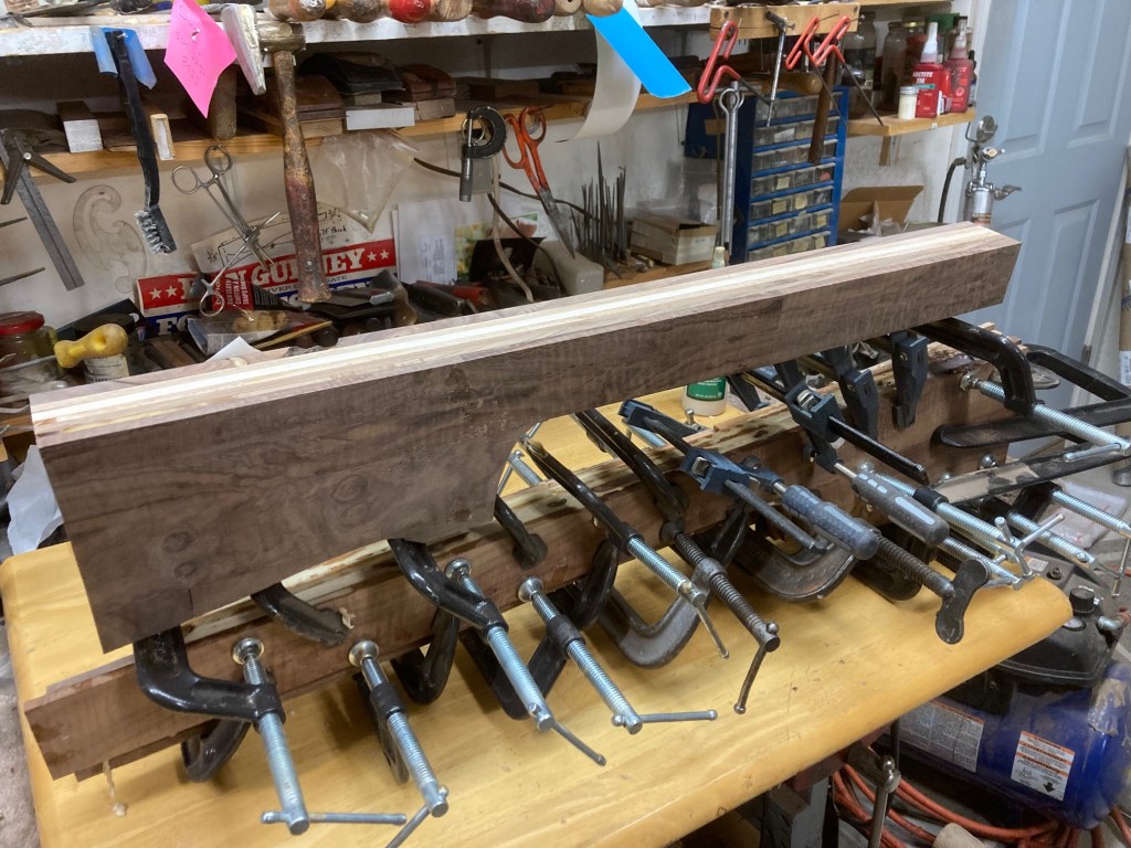 These are fancy flat pieces of wood from stocks I’ve done. It’s a mix of English Walnut, American Walnut, Koa, Mango, North American Walnut. The piece that I put water on was part of the USNRT Raffle Rifle.