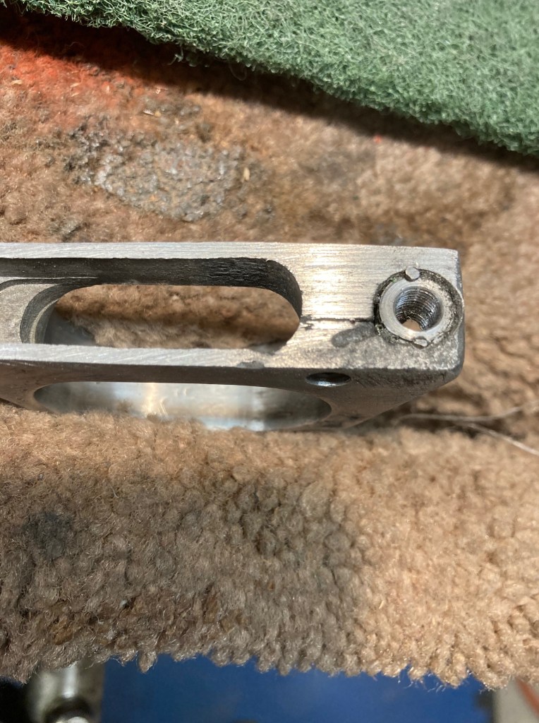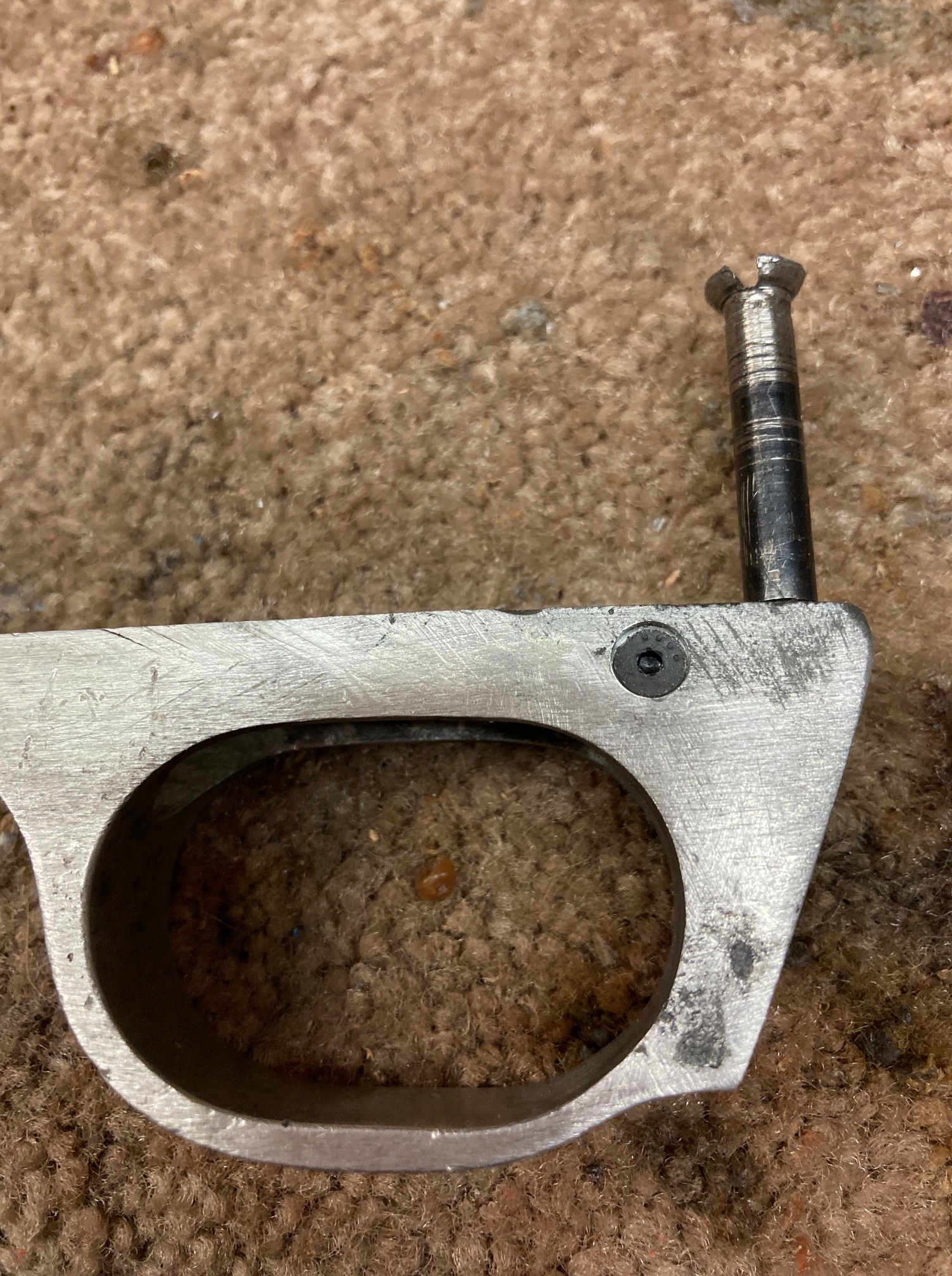 This trigger guard is from a Winchester 52D International. It apparently has a hard life. Wanting to keep the trigger guard as original as possible, I had to make a tap which has a 12×36 pitch. Once the tap was made, I had to make an escutcheon. The outside of the escutcheon, I used a 3/8×24 thread. Then drilled and tapped the trigger guard for same. Also, placed two pins down the sides of the escutcheon so it wouldn’t come undone. A skill I picked up from building Triumph motorcycles.