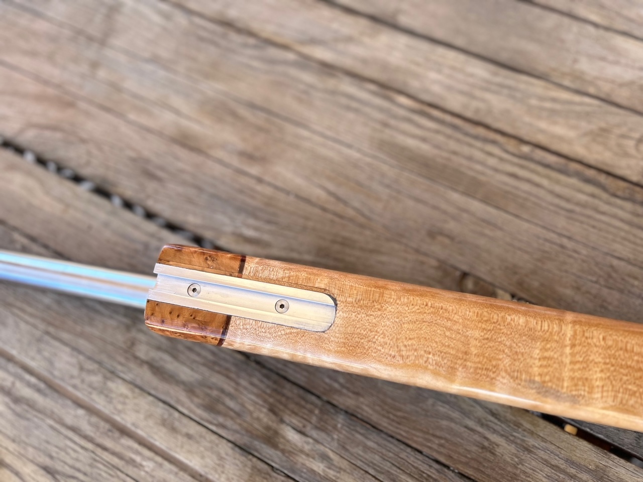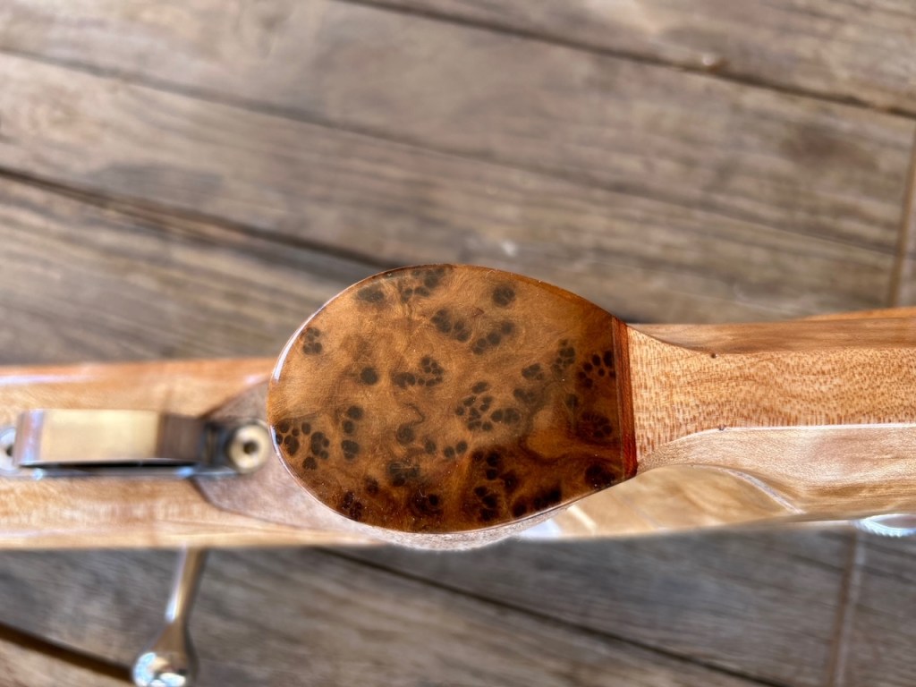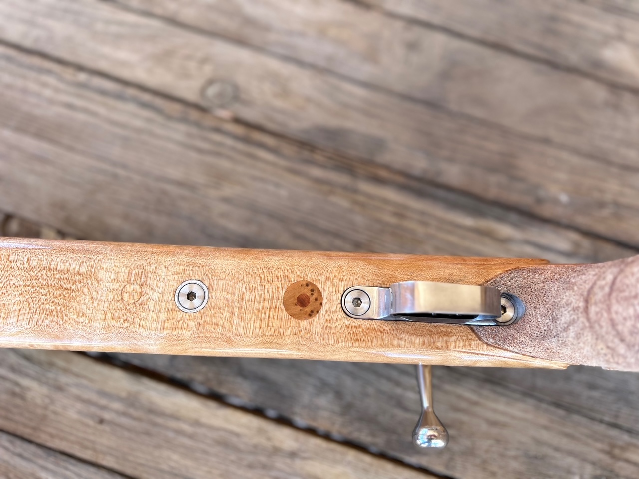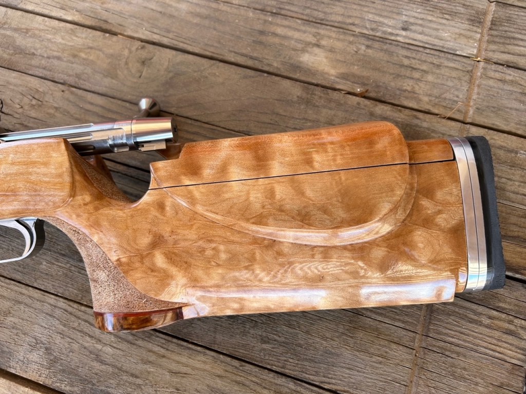 Accent pieces in pistol cap and fore end are Thuya wood and Bloodwood.