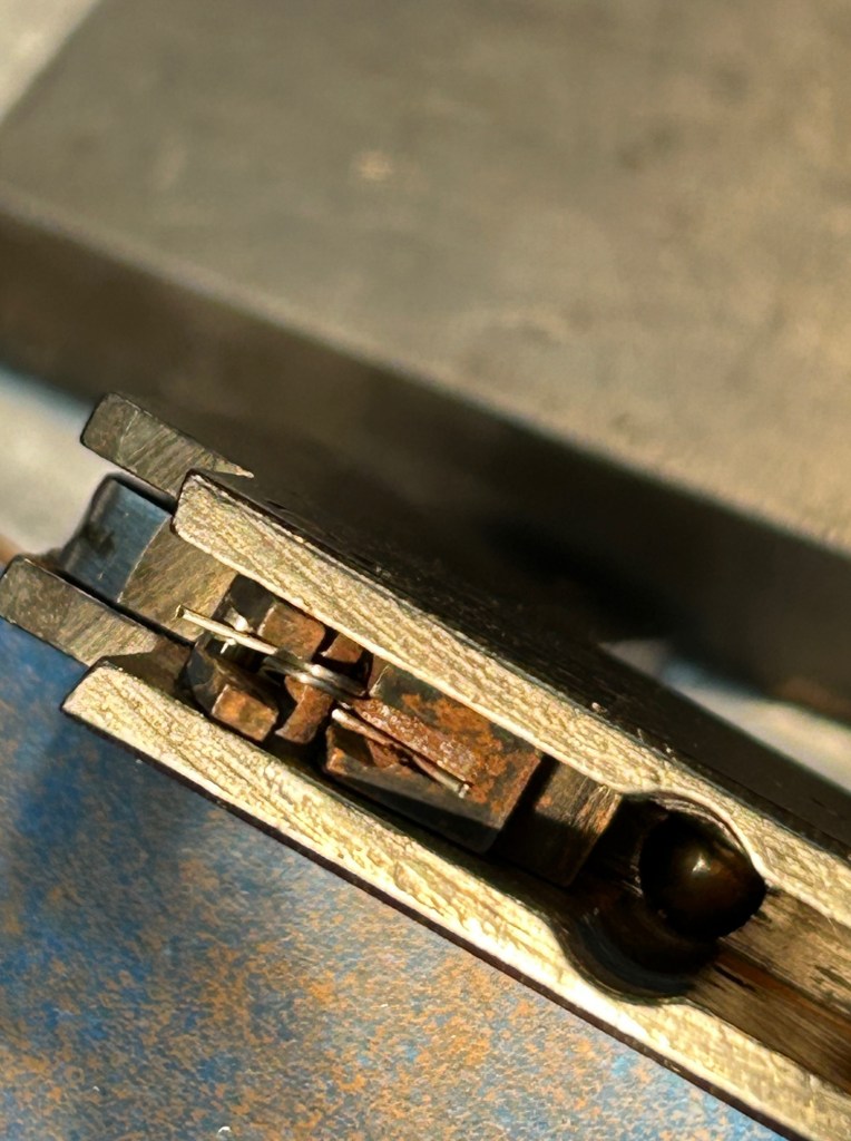 My granfather acquired a model 52 from a friend, it’s definitely a fixer upper as certain parts seemed to be missing. For example the magazine itself is literally a casing as the floorplate and spring are missing. Anyway it had this funky trigger in it and I spent an embarassing amount of time trying to figure out how it went together as the moment it was out of the gun it completely went to pieces. It had this long ‘spring’ that looked more like a paper clip that I figured went into the hole in that shoe on top but then how it connected with the claw shaped mini piece I was baffled by till I stumbled upon this post and saw the last picture then it clicked. It definitely fits better together but much like your example here I dont think it acctually works correctly. This particular Canjar trigger says 52-2 on the side of it though. I see the Allen key looking bolt you have there, its missing on this one as is that little spring you mention needing to tie a string to. What size allen key/bolt would you say that is? Maybe I can replace it with a general one from general hardware? The little spring might be a little tricky I might have to talk to a more capable machinist to make that.
