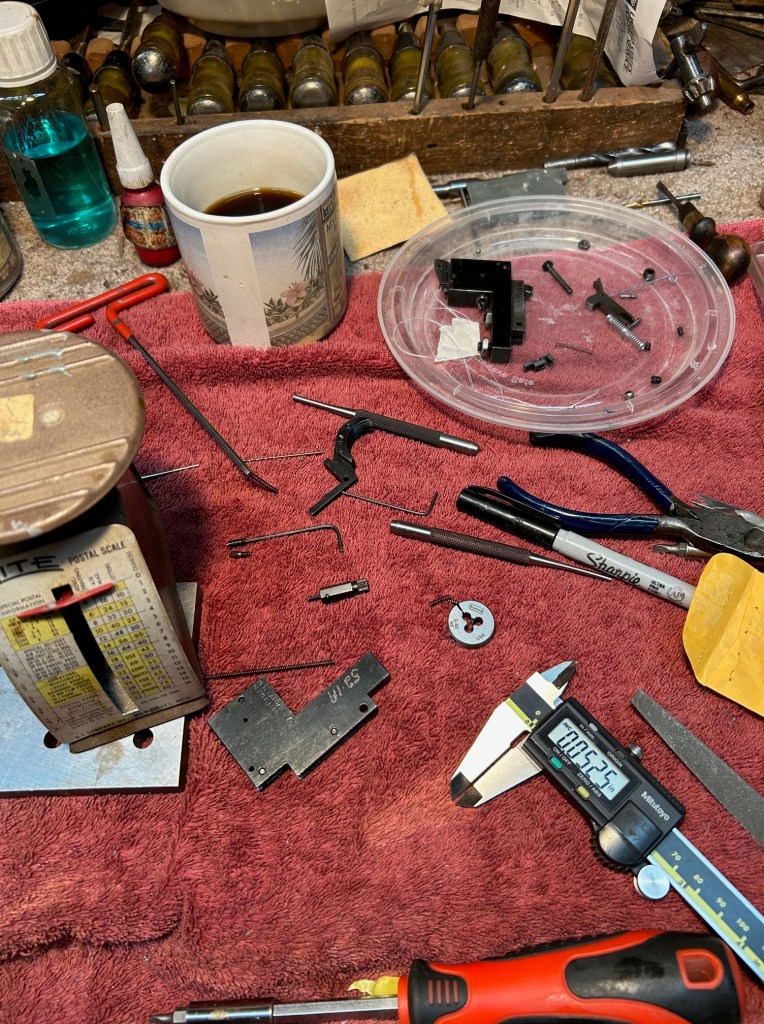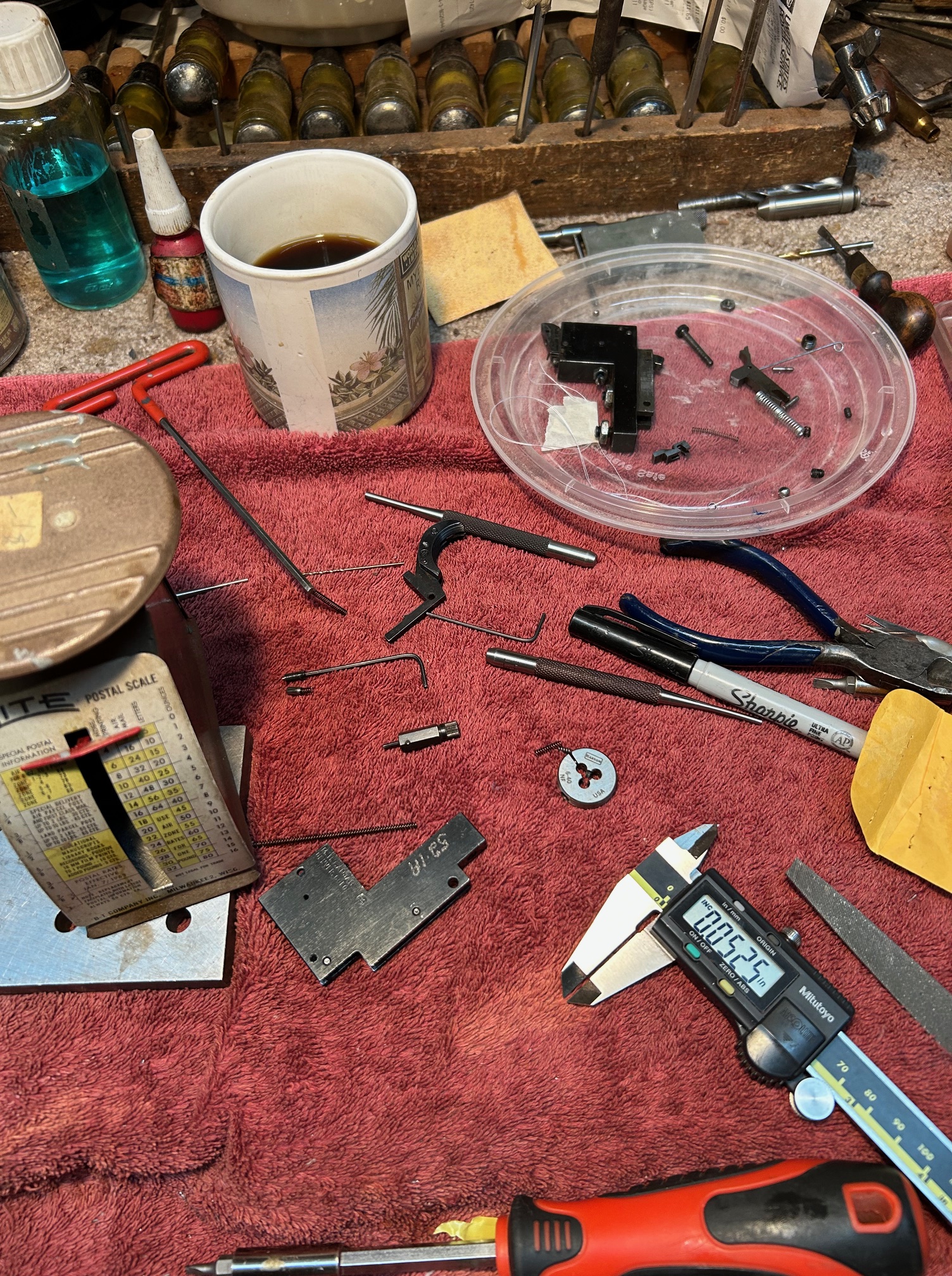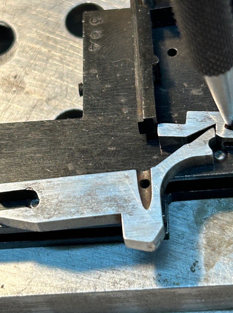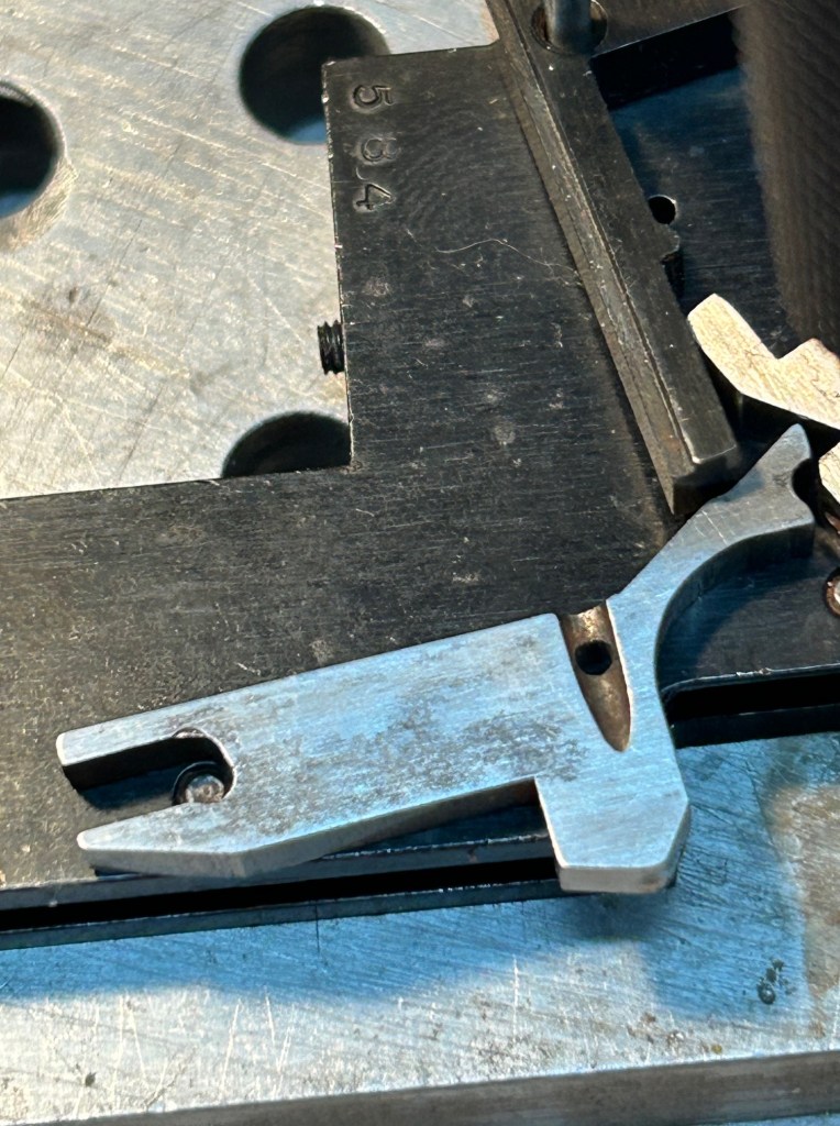 This trigger arrived, looked like it was in good shape, but wasn’t functioning properly. On closer inspection it was full of rust. I disassembled and cleaned it all out. Reassembled. Still not working. There is a pesky little spring that wanted to make an escape, tied a piece of thread on it. Could not make the trigger function. So, I drilled and tapped for a sear.. and made some small parts for pressure release. This completed the fix! Trigger will function from 3 ounces and higher.