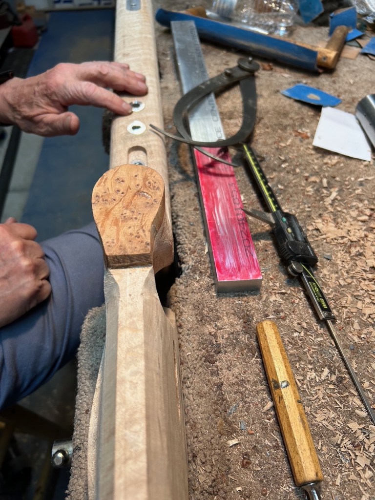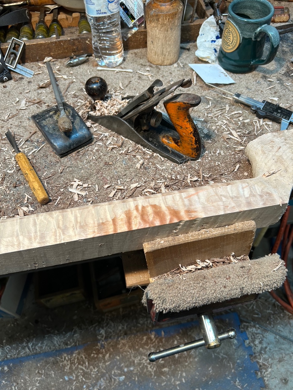 We’ve used the word challenging before… and this was definitely in that category. The grain goes every other different direction from whence it’s supposed to. There’s a lot of block sanding to coerce the grain to go flat due to the changing density of the wood. If not sanded properly it ripples like the ocean.