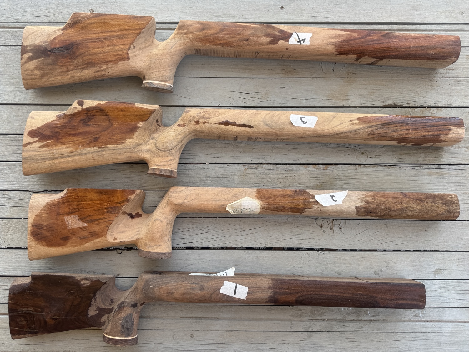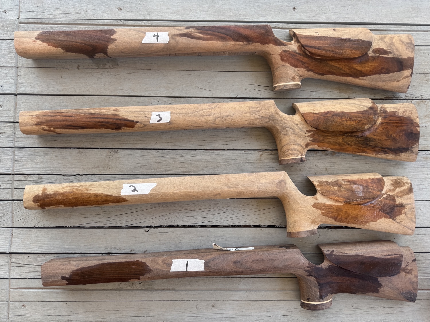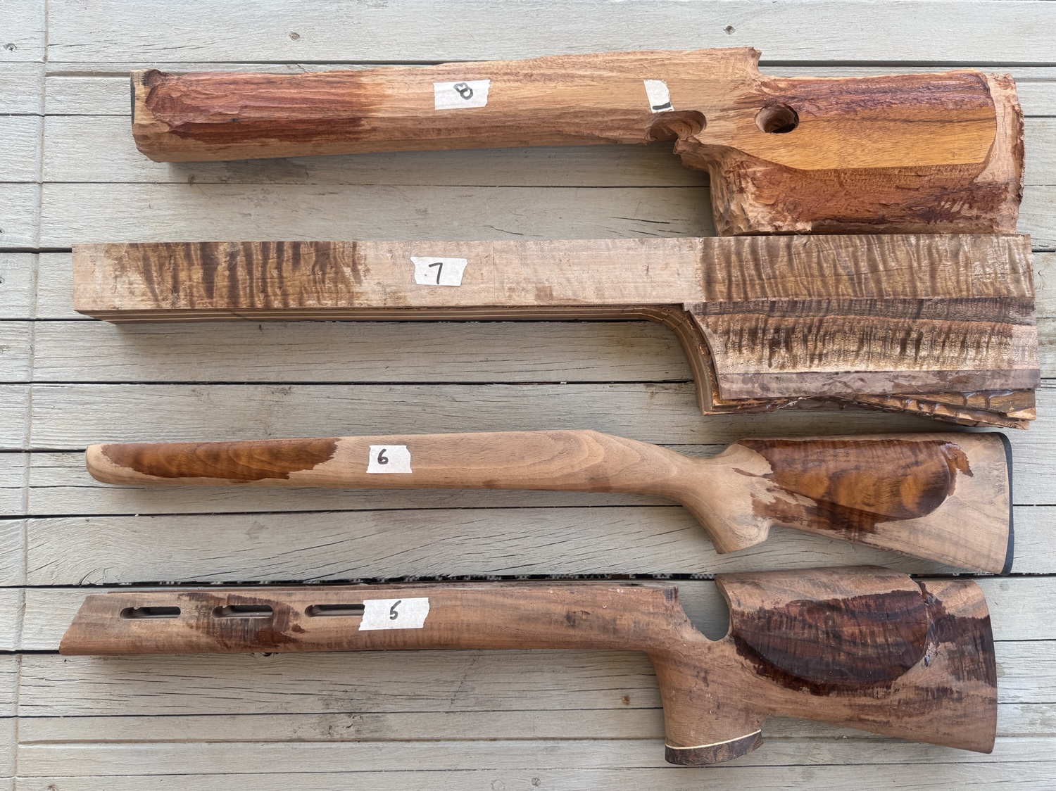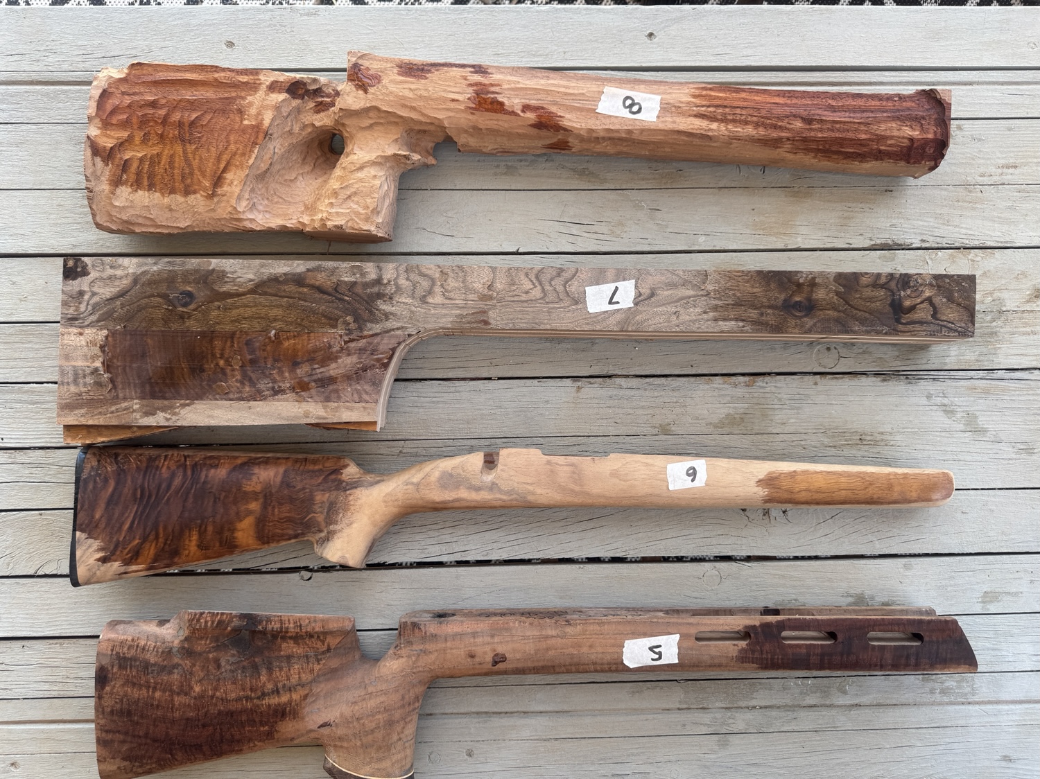 #5.) McTrudie- Claro Walnut, nice figured, this is a little smaller Magee stock, has vents, pin in wrist, pistol grip cap plus inletted for rail. $500
