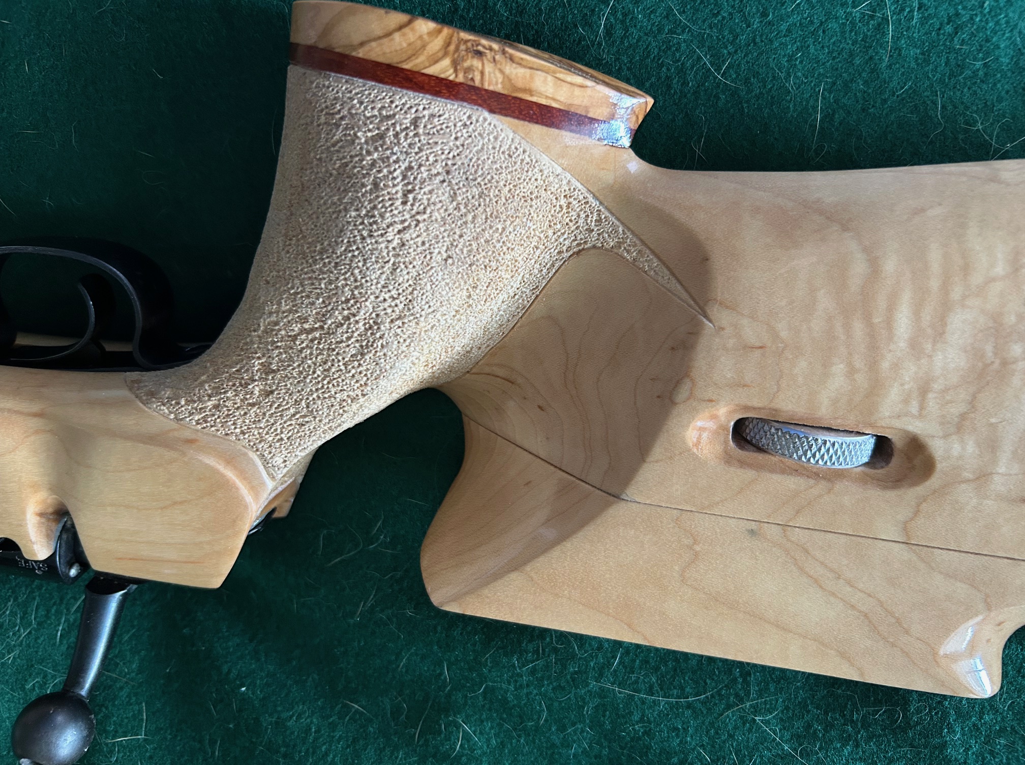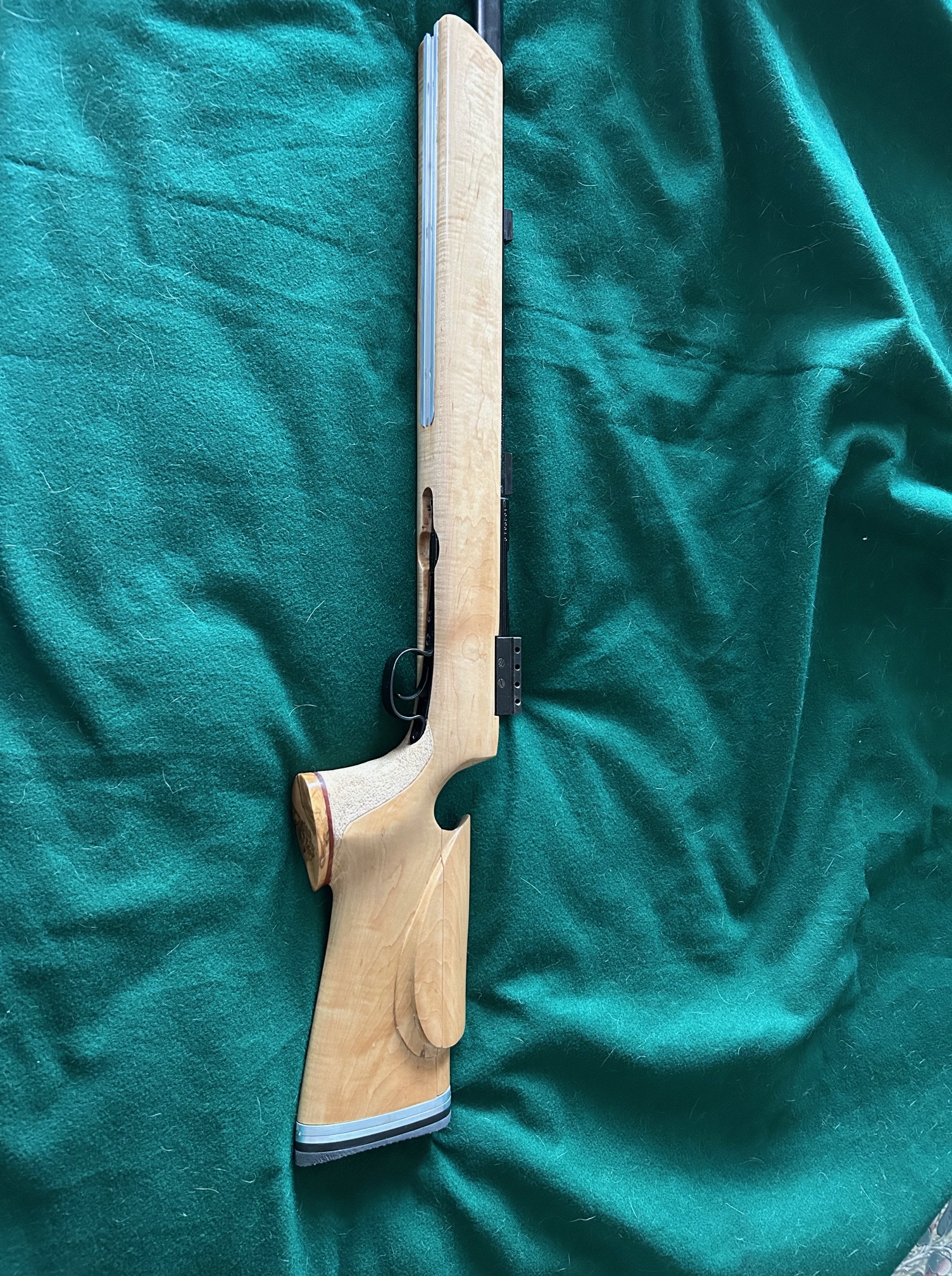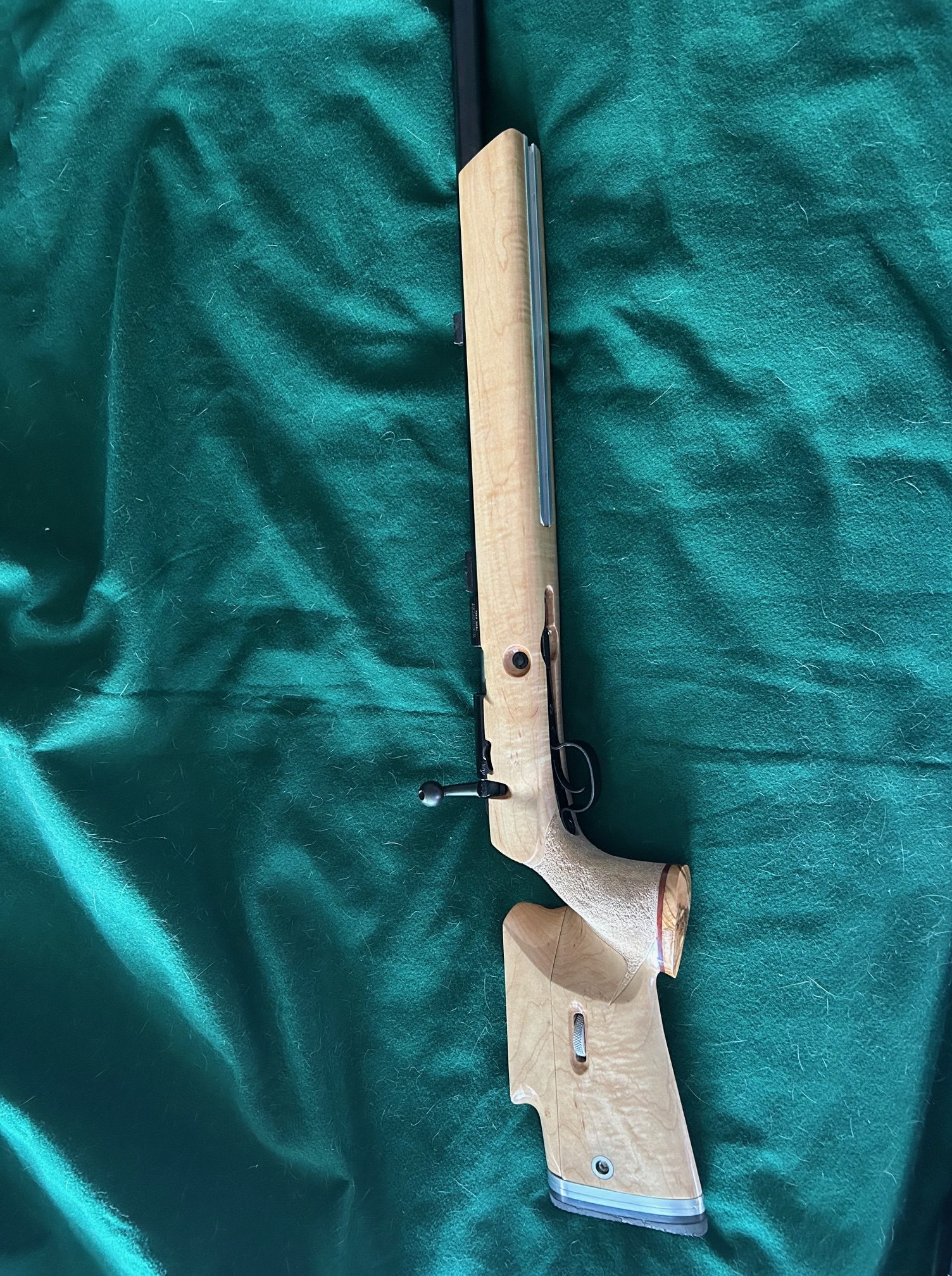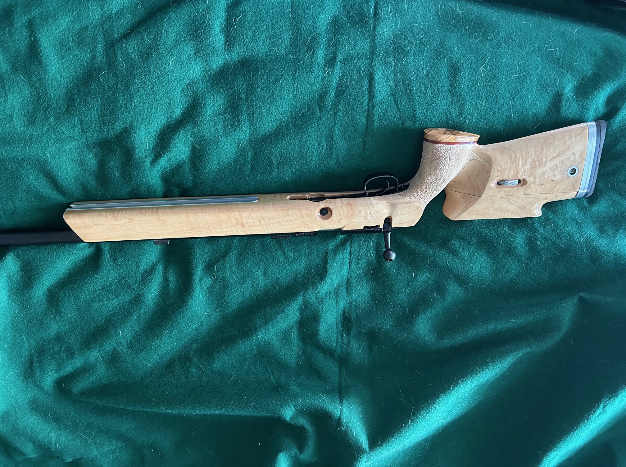 I was contacted to build this stock for a group of “older” kids. This is a tribute rifle for an group of Army shooters. This group has been a “Band of Brothers” for many years. They won the Southern Conference Championship for several years awhile ago. Tried to keep all of the metal work original. Definitely, an improvement from the original Winchester stock.