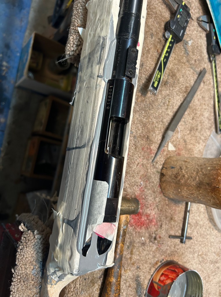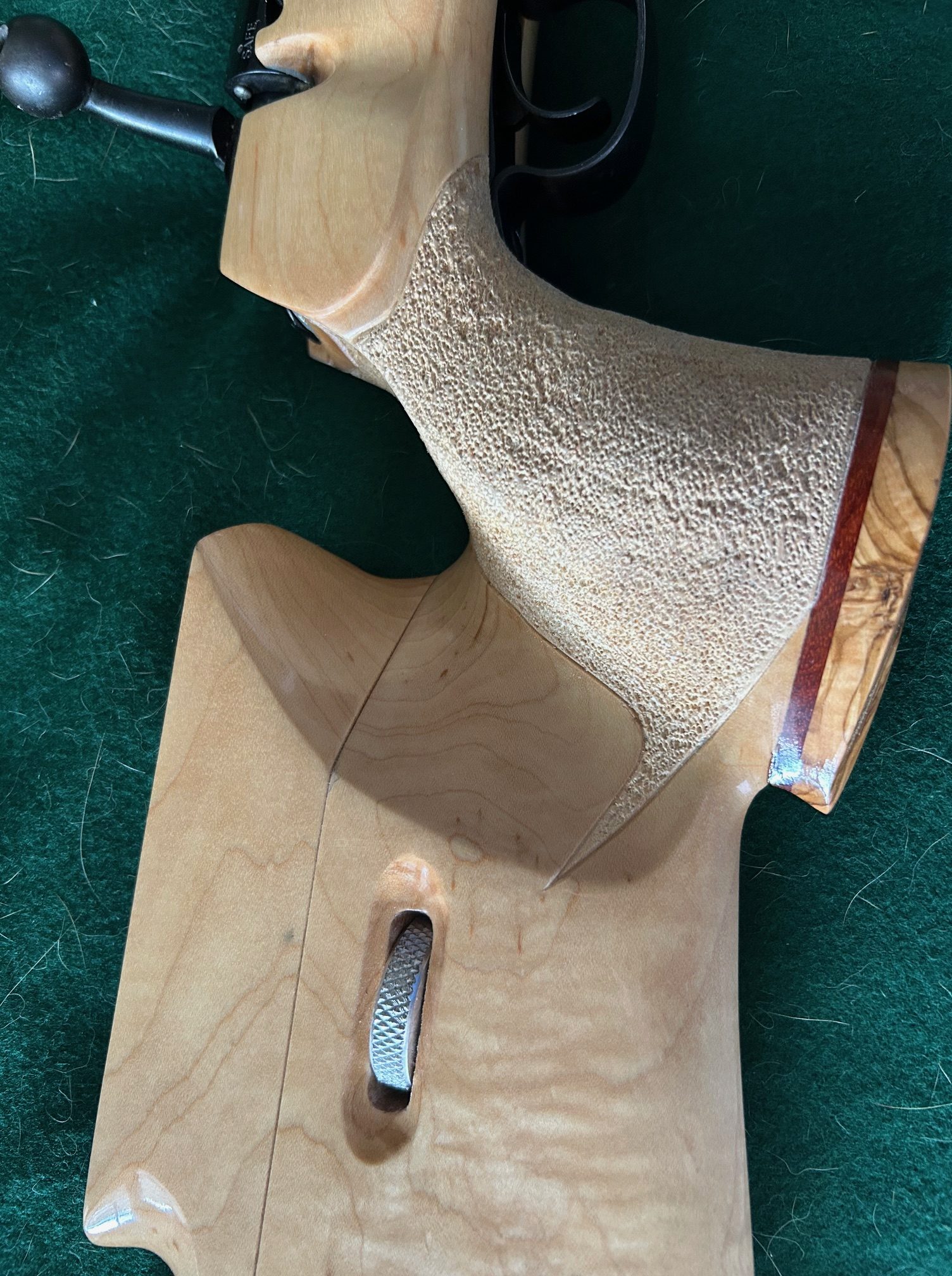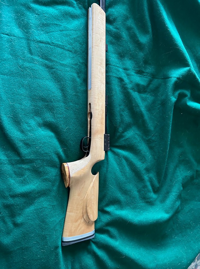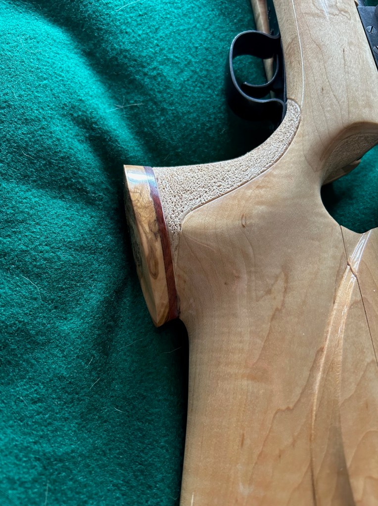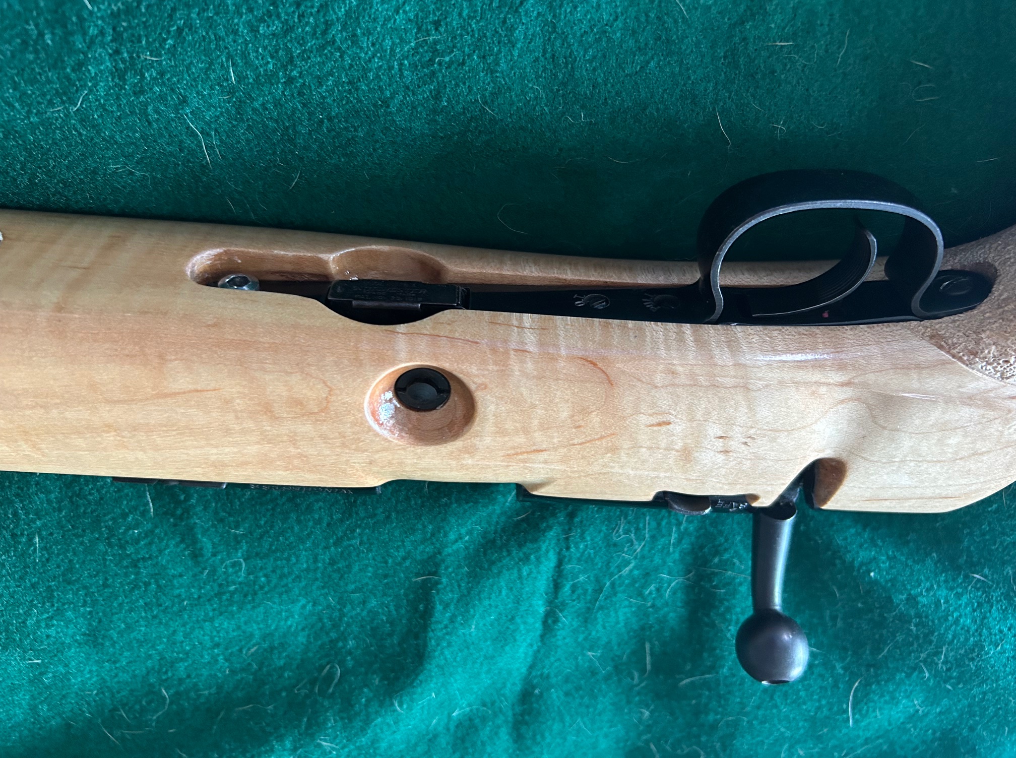 I was contacted to build this stock for a group of “older” kids. This is a tribute rifle for an group of Army shooters. This group has been a “Band of Brothers” for many years. They won the Southern Conference Championship for several years awhile ago. Tried to keep all of the metal work original. Definitely, an improvement from the original Winchester stock.