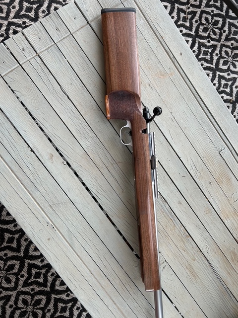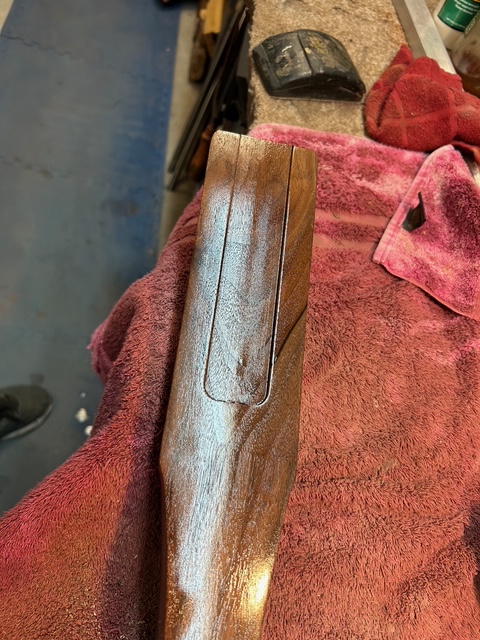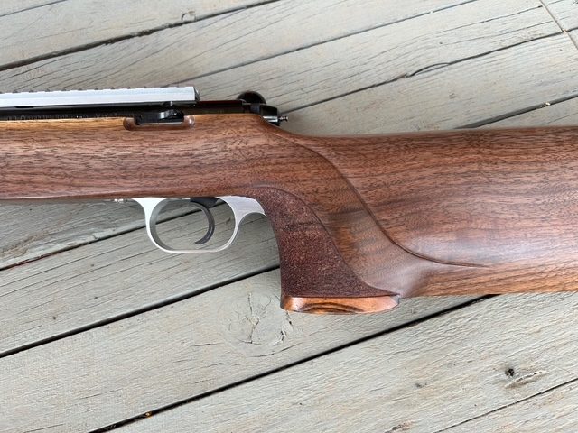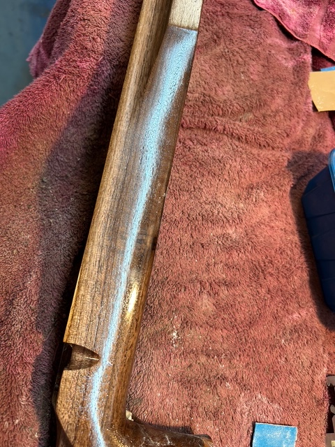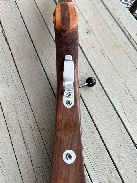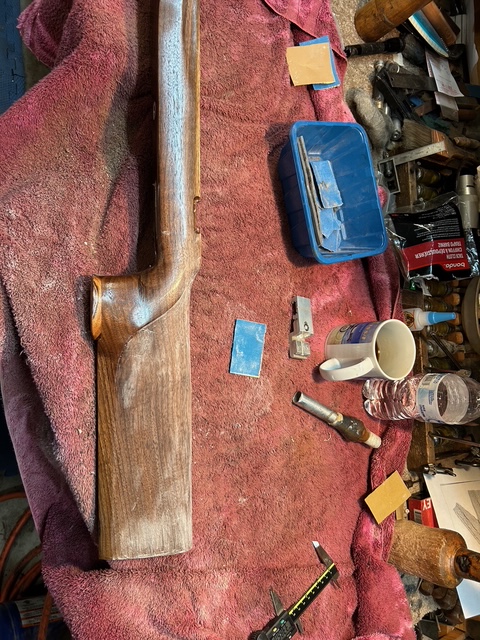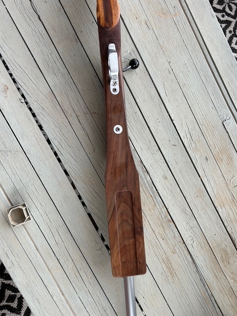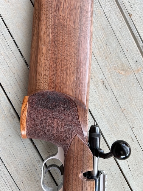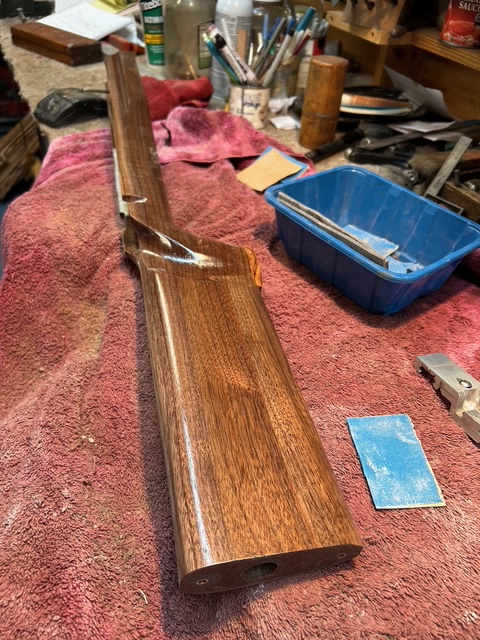 This kept me off the mean streets of Rio Rancho last week. Added a double shadow line on the pistol grip. Pistol grip cap is Goncalo Alves, the same wood as a Smith & Wesson pistil grip cap.