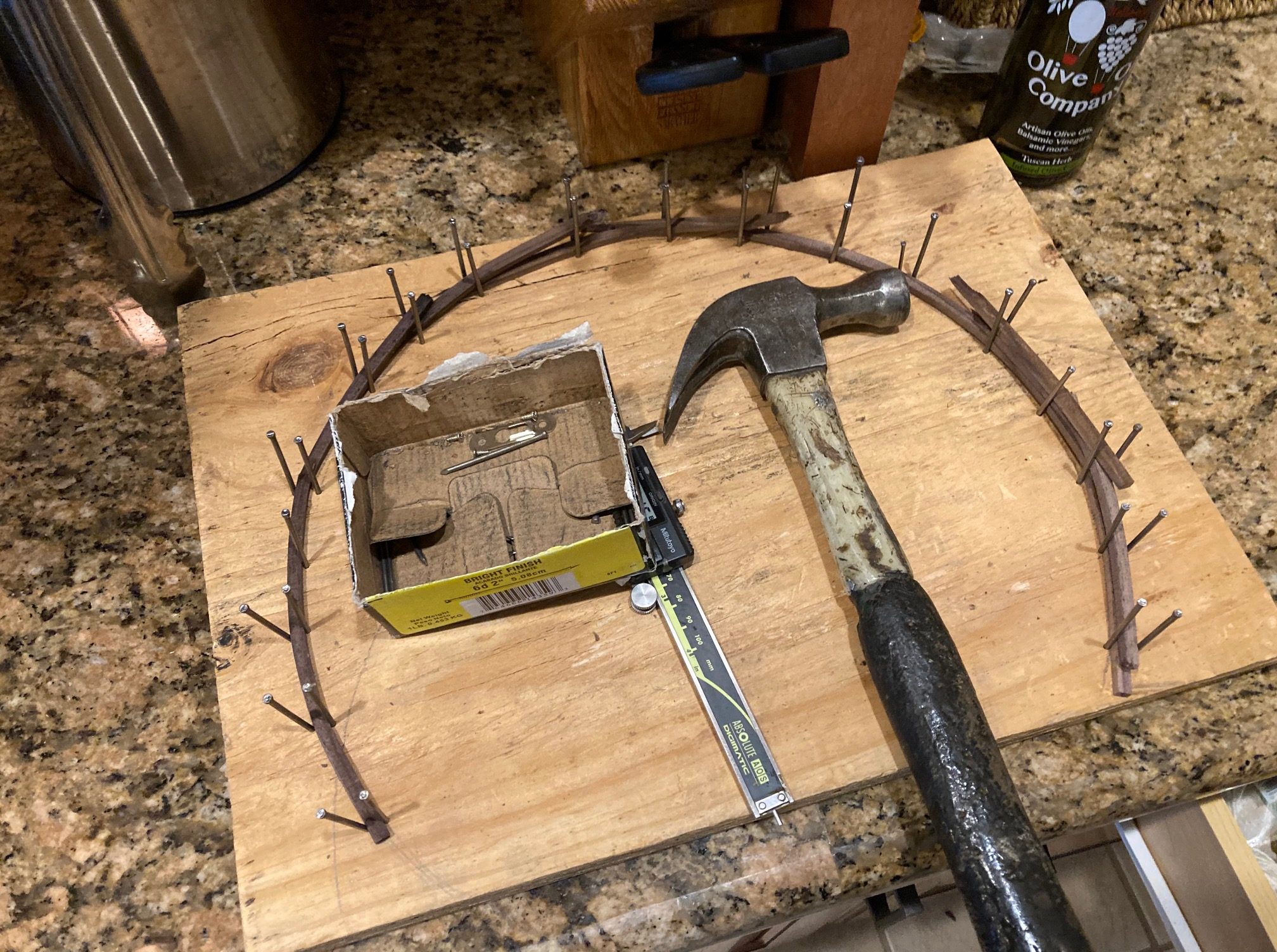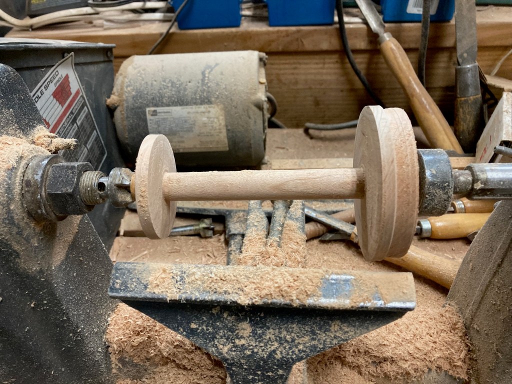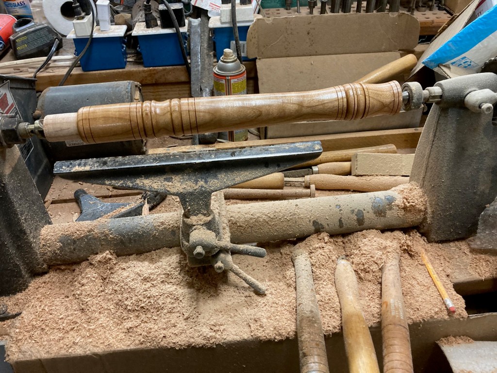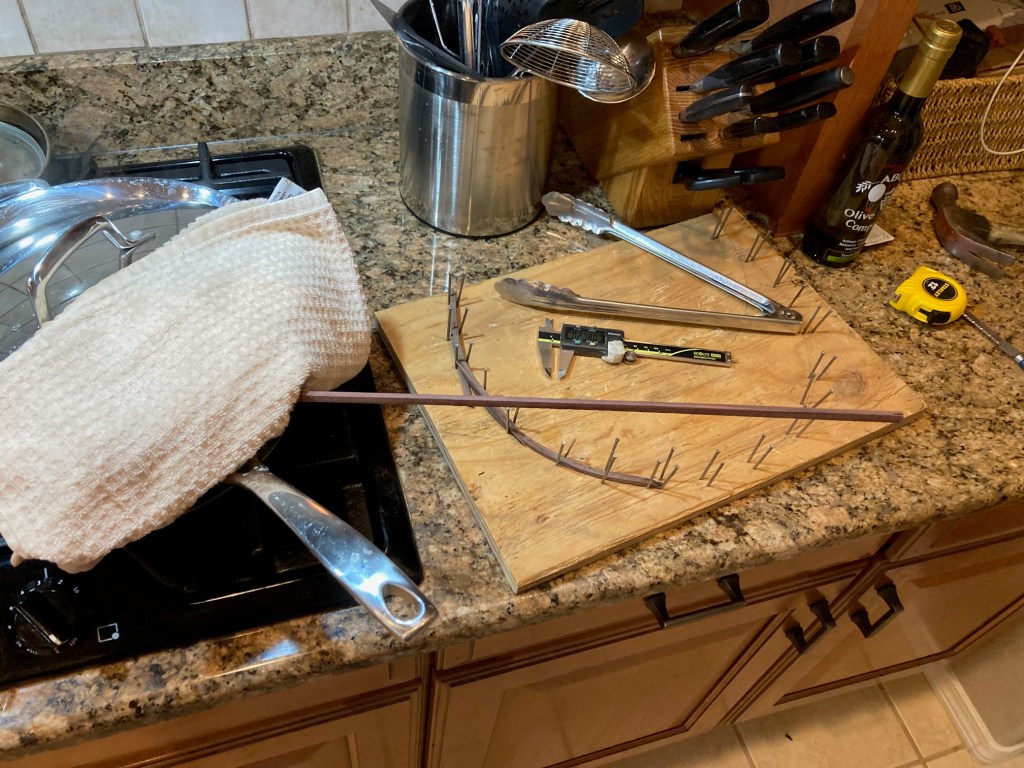 Once in a while, I’ll lose a day of woodworking, because the workbench needs to be recovered. Yesterday was that day. Clare came over to helped and take pictures.