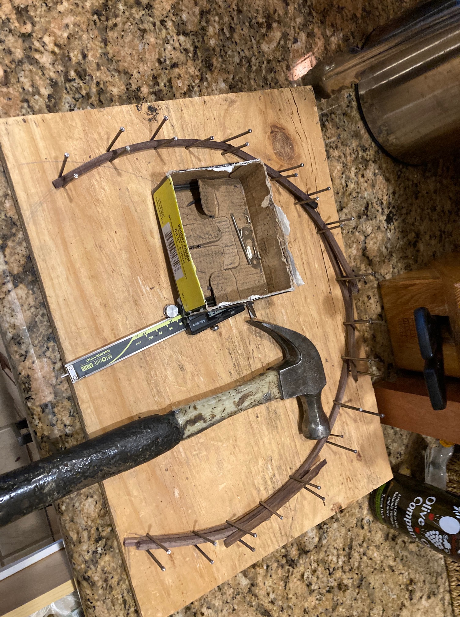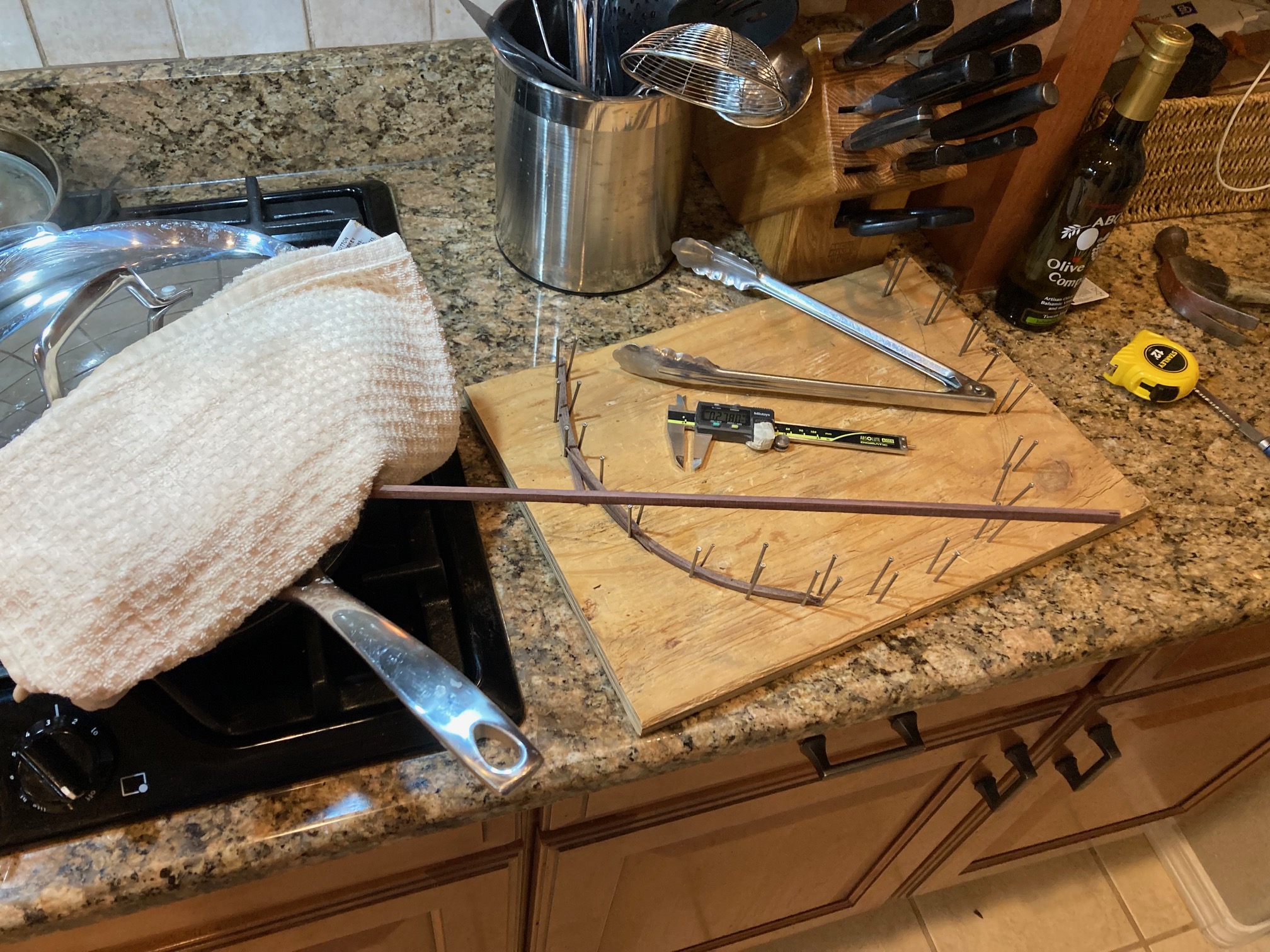 Once in a while, I’ll lose a day of woodworking, because the workbench needs to be recovered. Yesterday was that day. Clare came over to helped and take pictures.