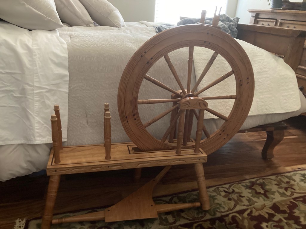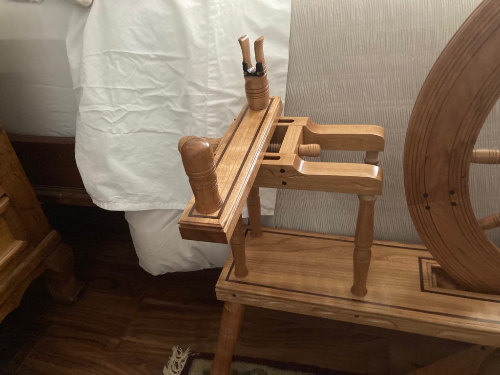 Things have slowed down just a bit. I’ve been keeping busy by making another spinning wheel. Idle hands and all.