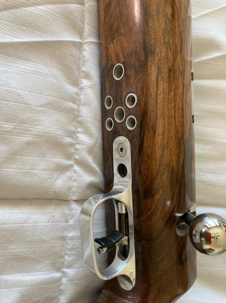 I built this stock around 2010 for the a left handed Swindlehurst action. The previous owner wanted this action back. The new owner wanted the stock, so I put in a Walter KK500 Action.