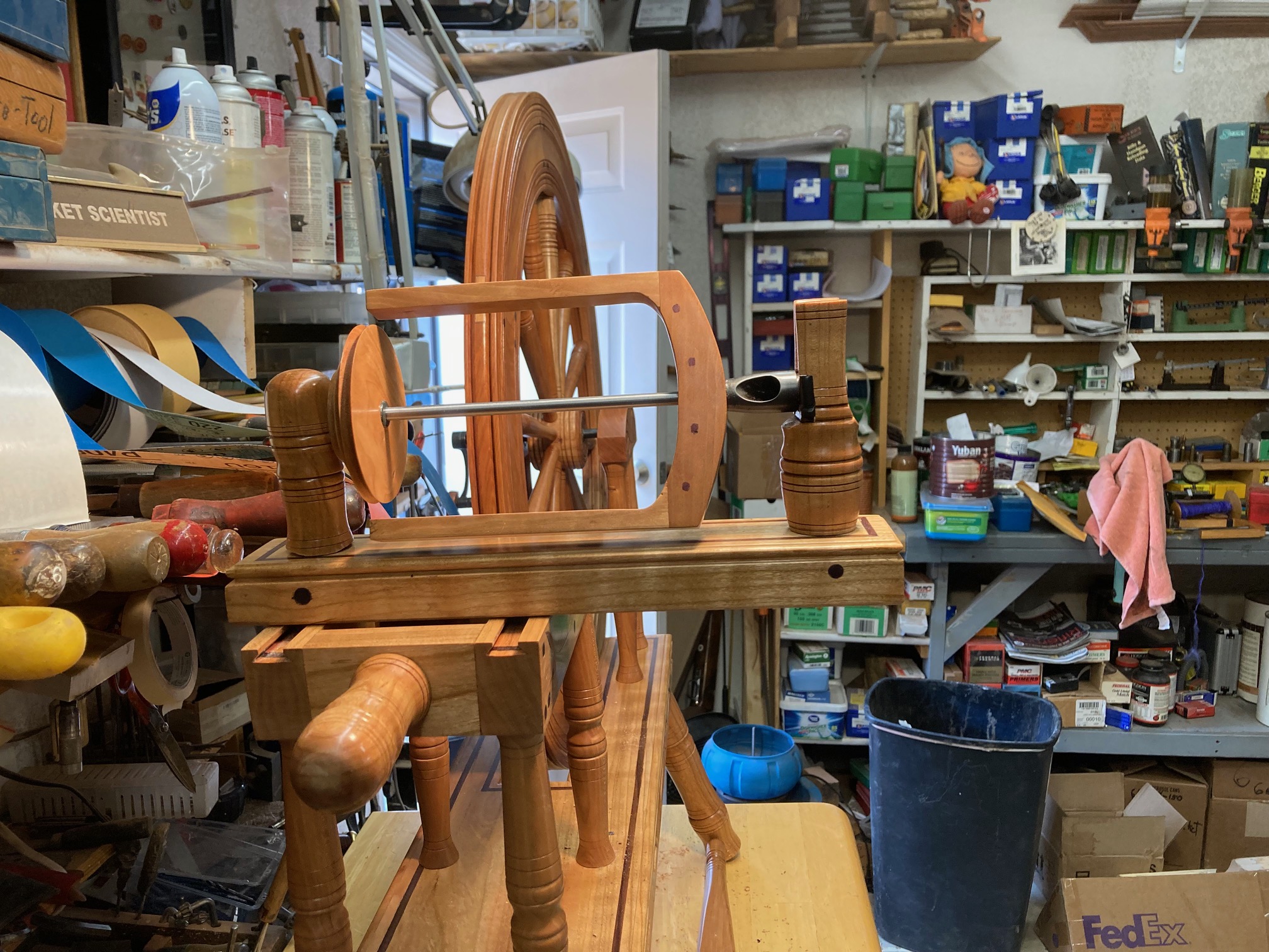 Things have slowed down just a bit. I’ve been keeping busy by making another spinning wheel. Idle hands and all.
