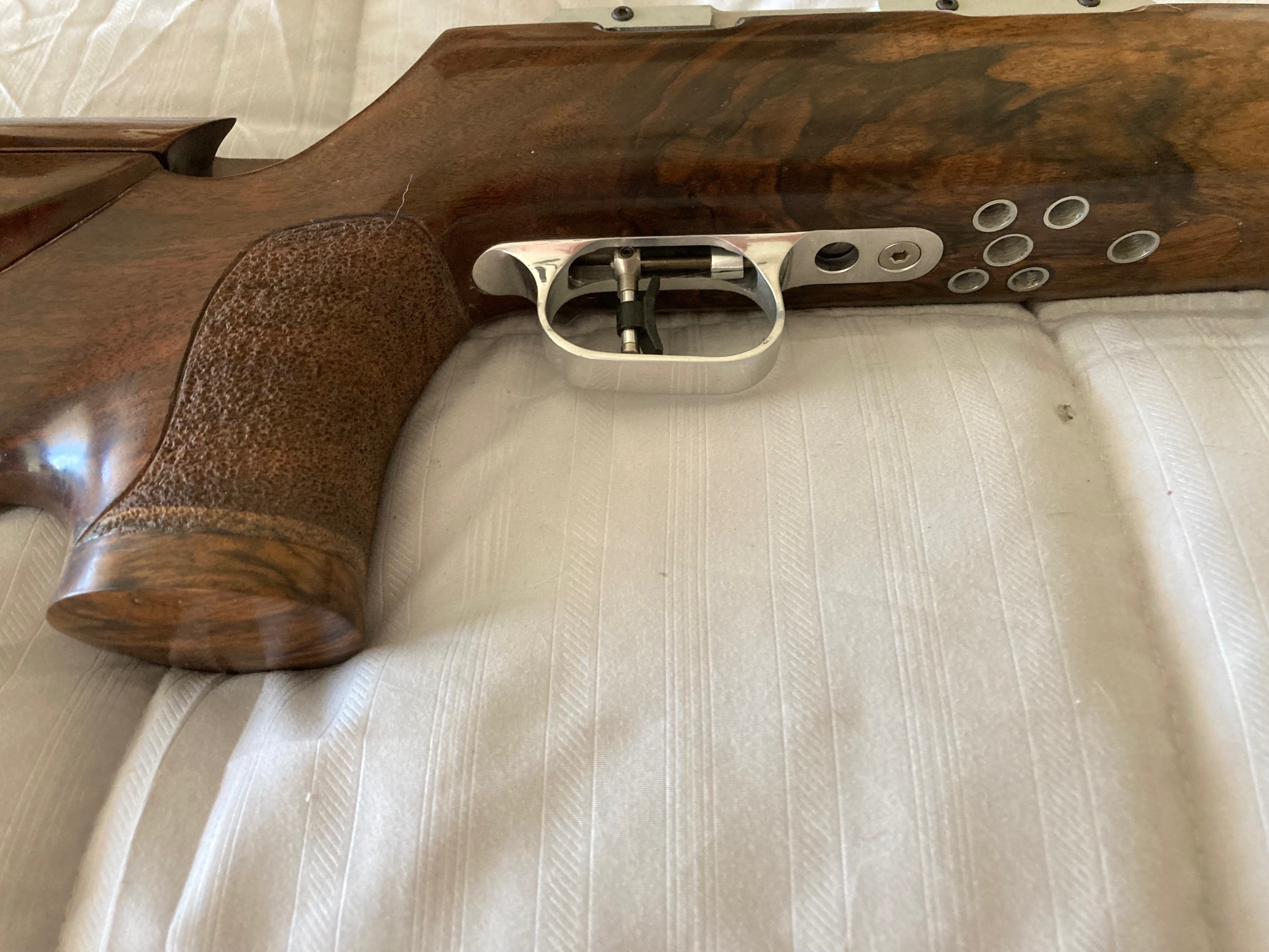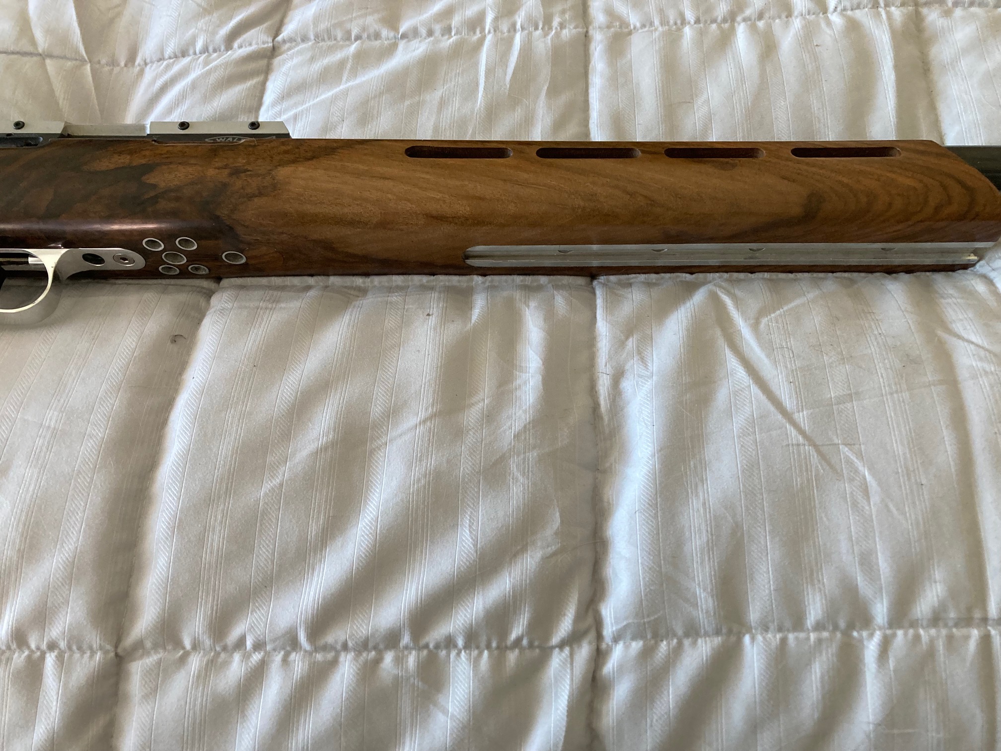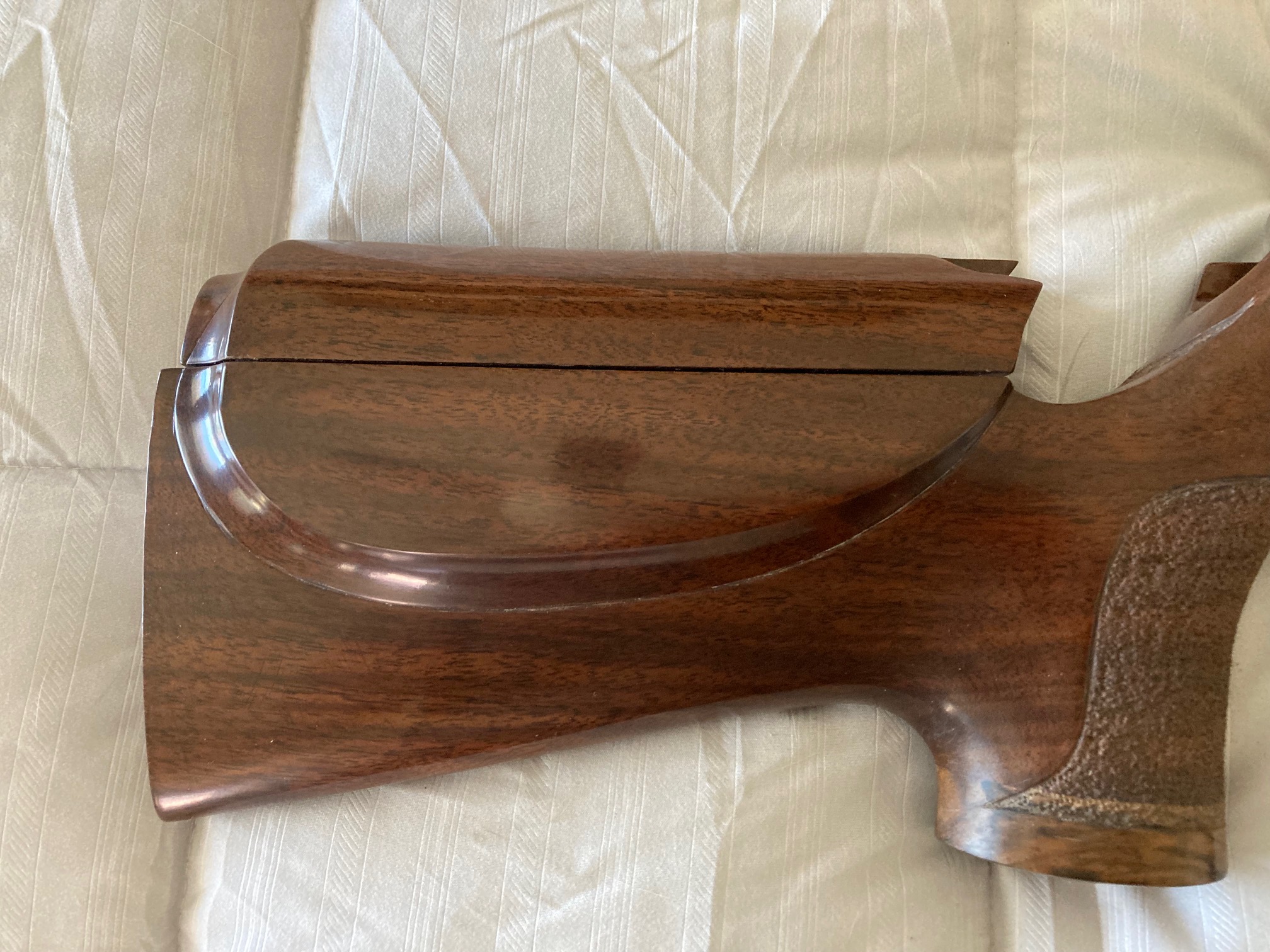 I built this stock around 2010 for the a left handed Swindlehurst action. The previous owner wanted this action back. The new owner wanted the stock, so I put in a Walter KK500 Action.